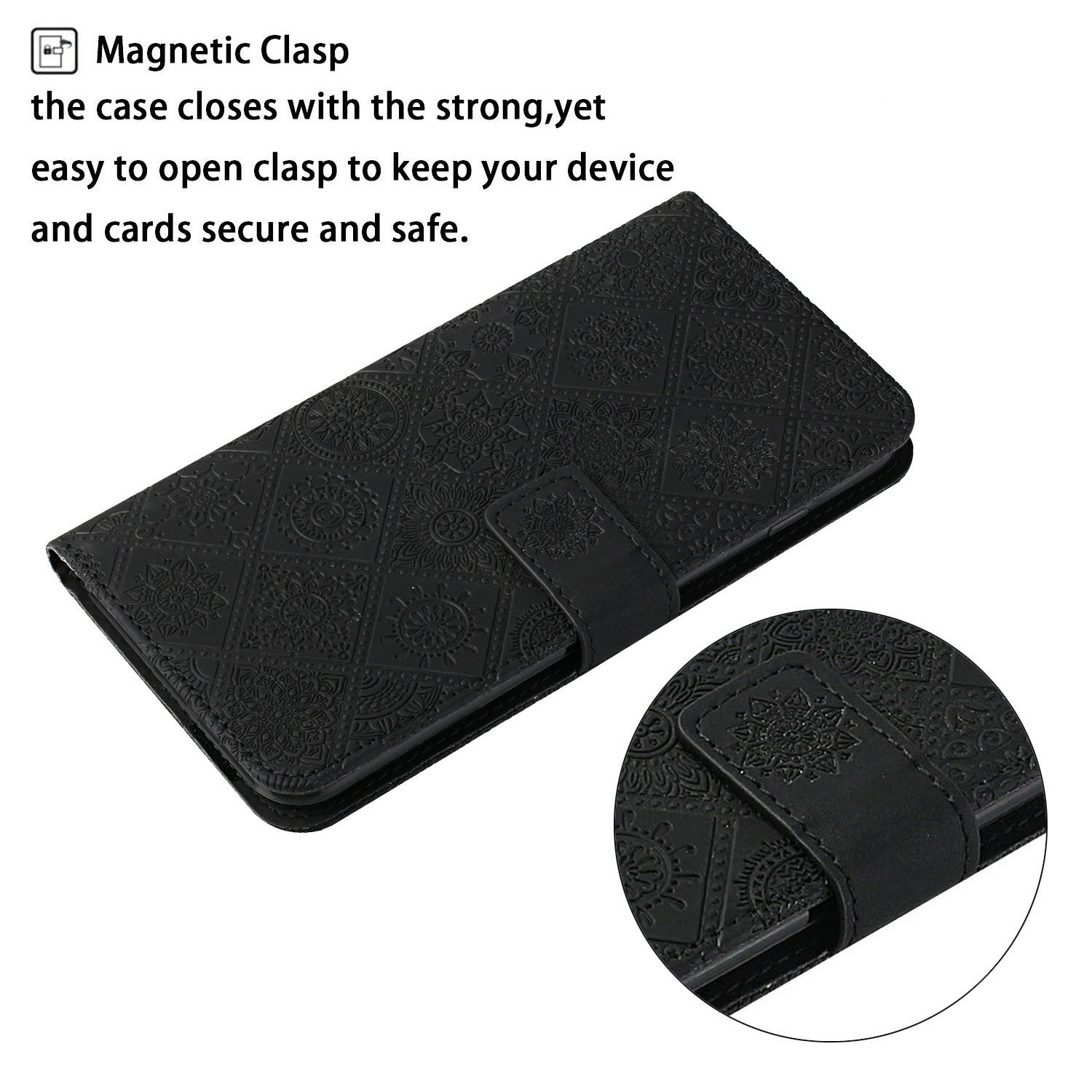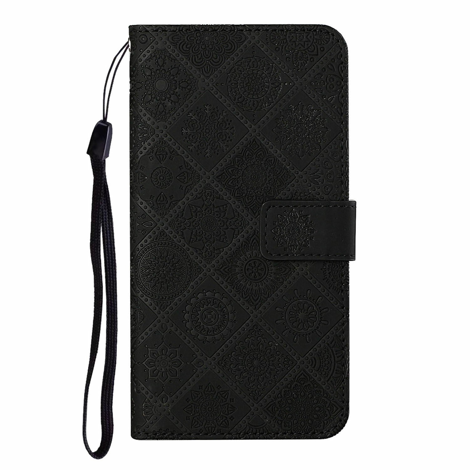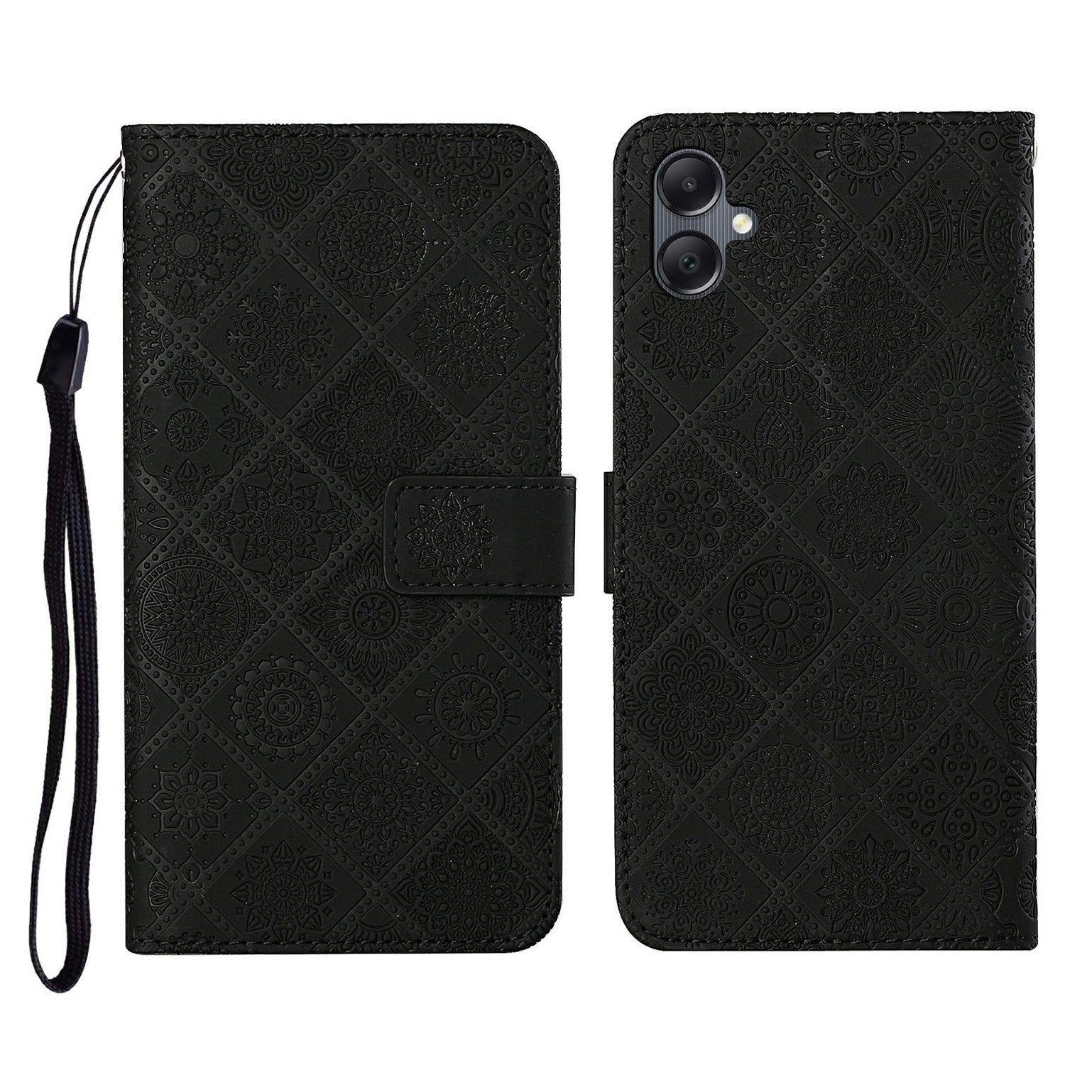 For Samsung Galaxy A06 Leather Case Ethnic Style Phone Wallet Cover with Strap - Black