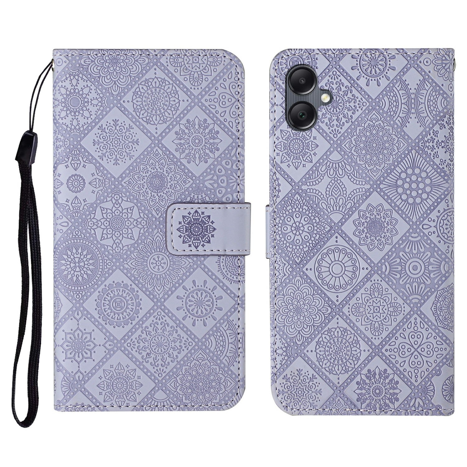 For Samsung Galaxy A06 Leather Case Ethnic Style Phone Wallet Cover with Strap - Purple