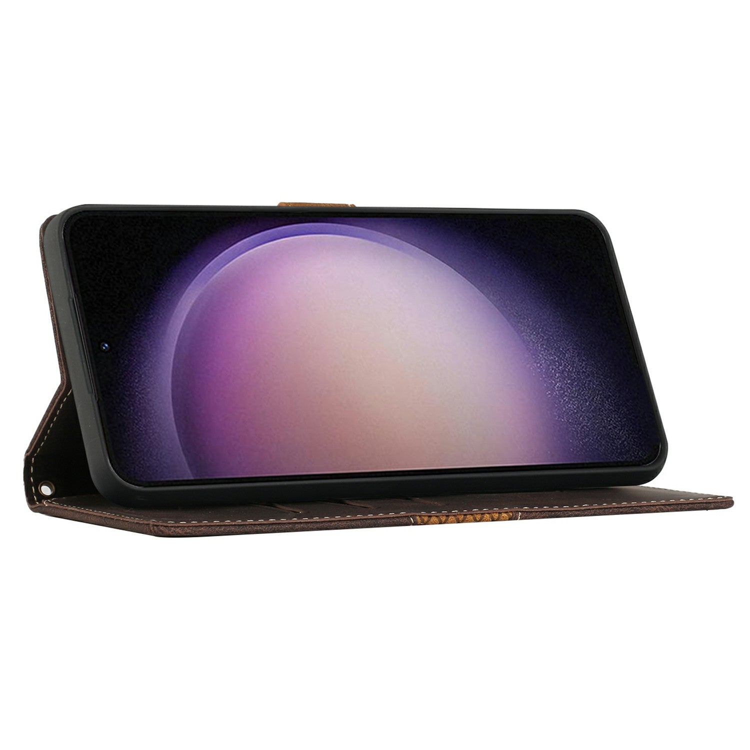 For Samsung Galaxy A06 Leather Case Grid Splicing Stand Wallet Phone Cover - Brown