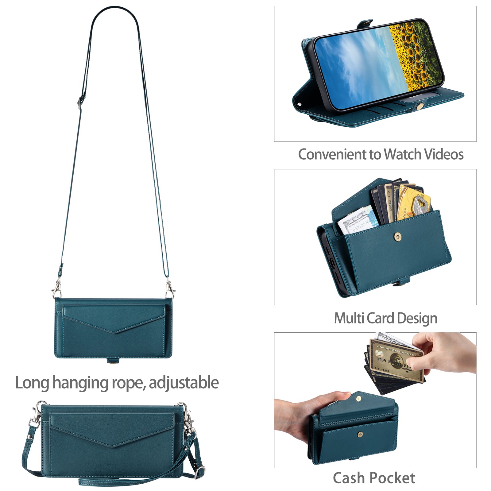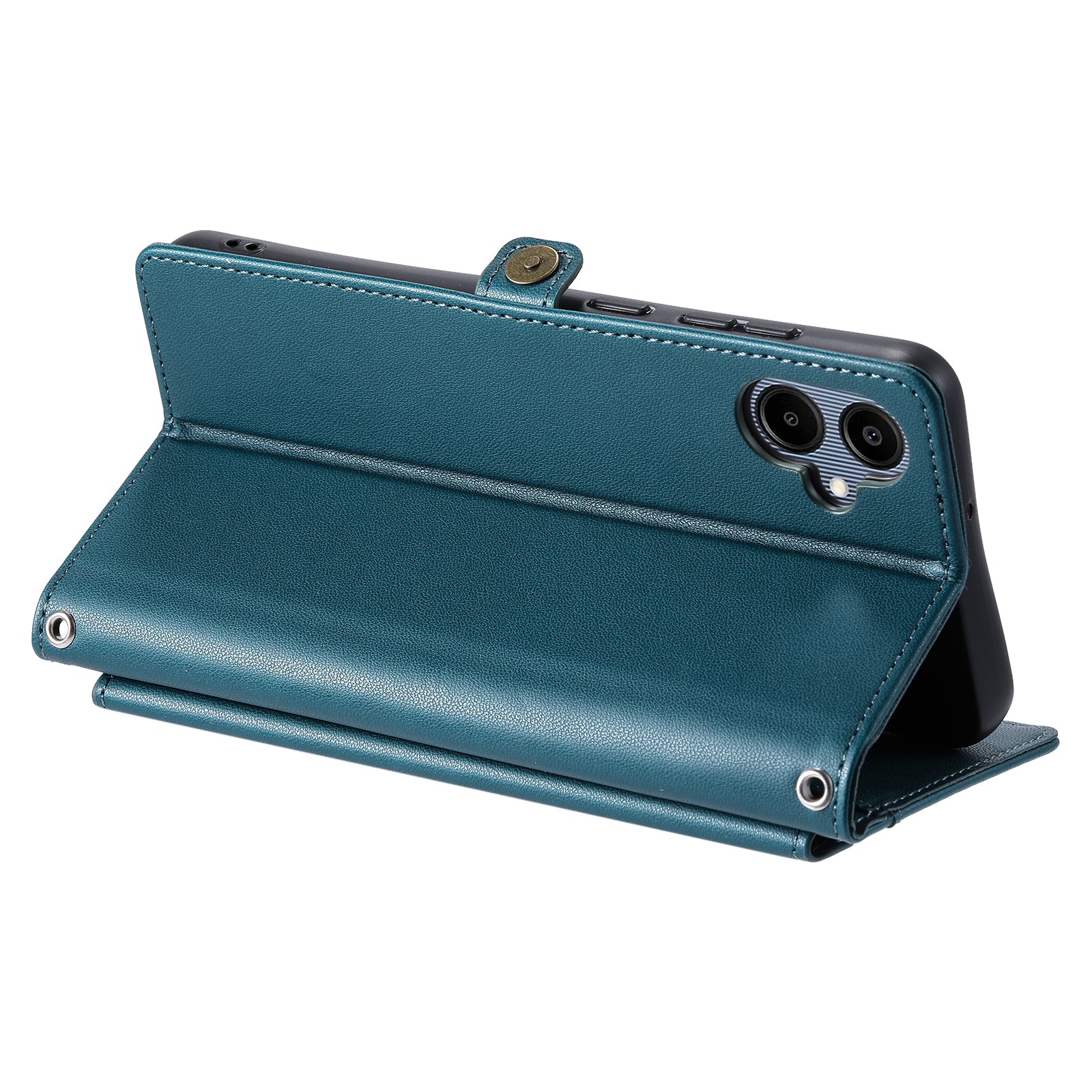 For Samsung Galaxy A06 Leather Case Wallet Stand Phone Cover with Straps - Blackish Green