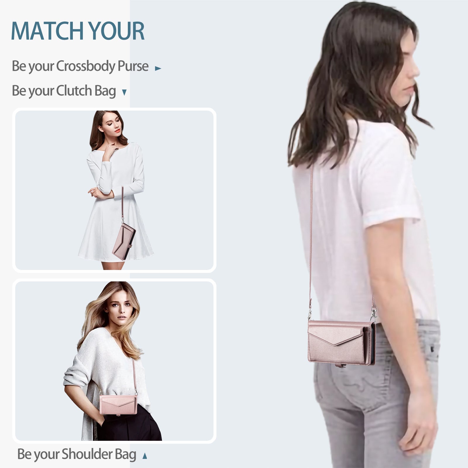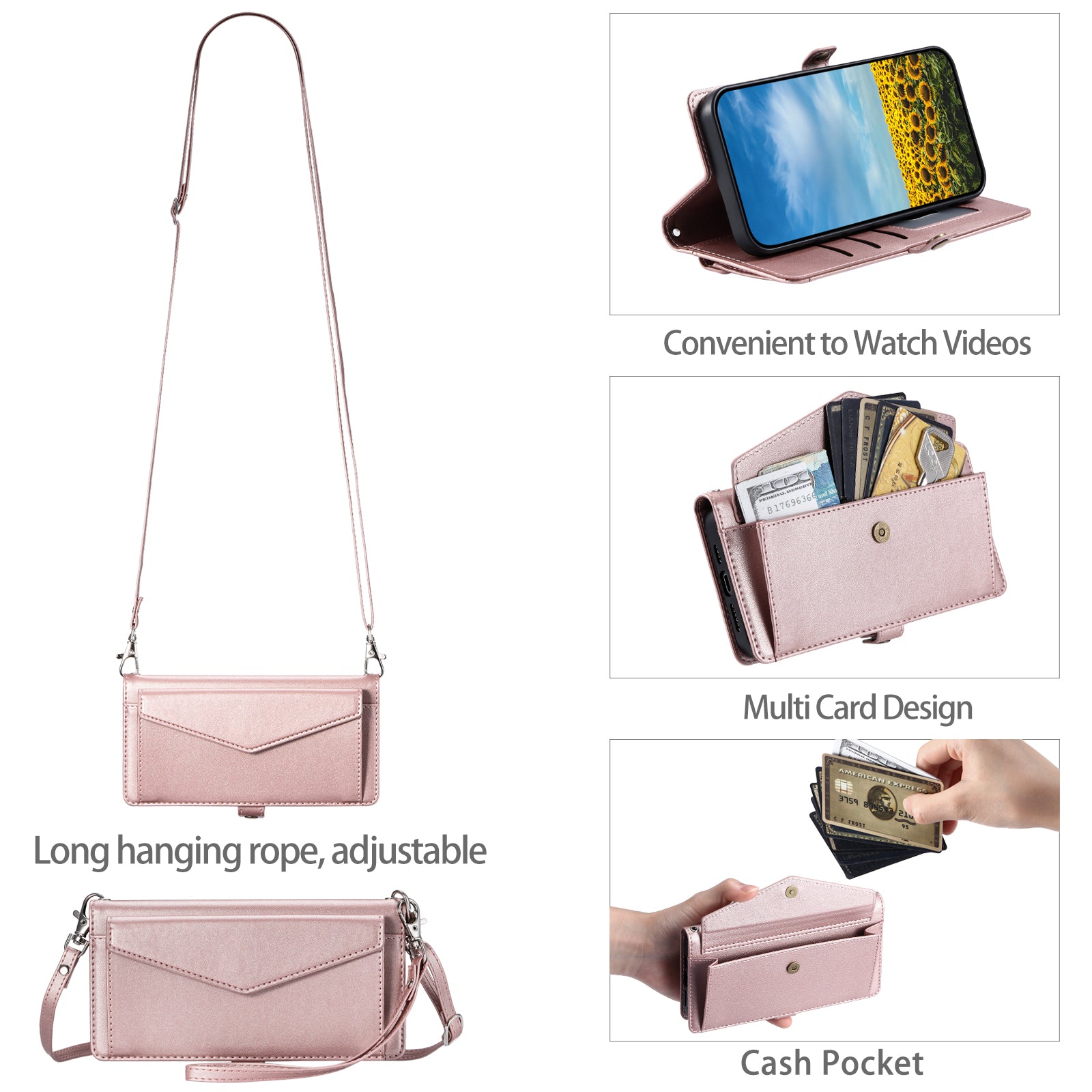 For Samsung Galaxy A06 Leather Case Wallet Stand Phone Cover with Straps - Rose Gold