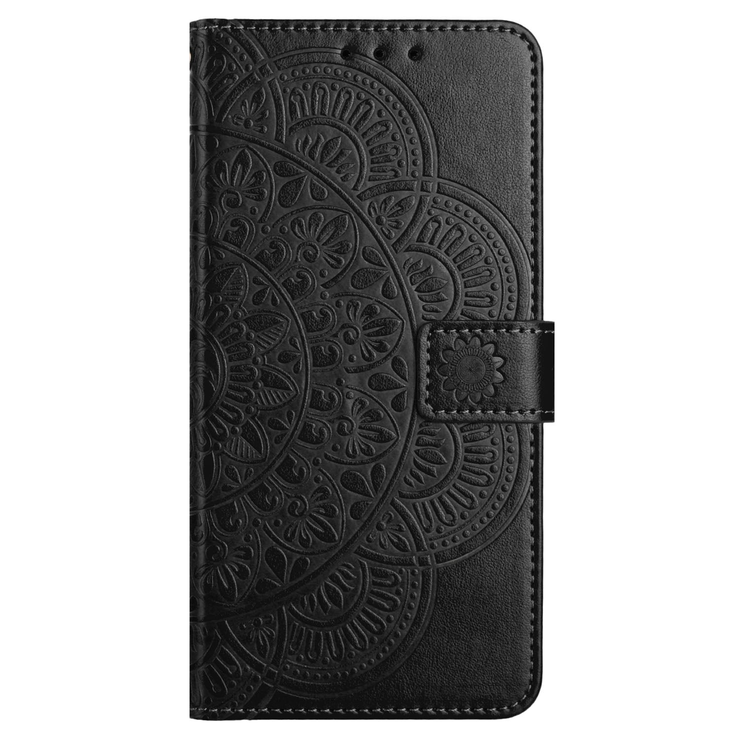 For Samsung Galaxy A06 Leather Case with Card Slots Mandala Pattern Phone Cover Stand - Black