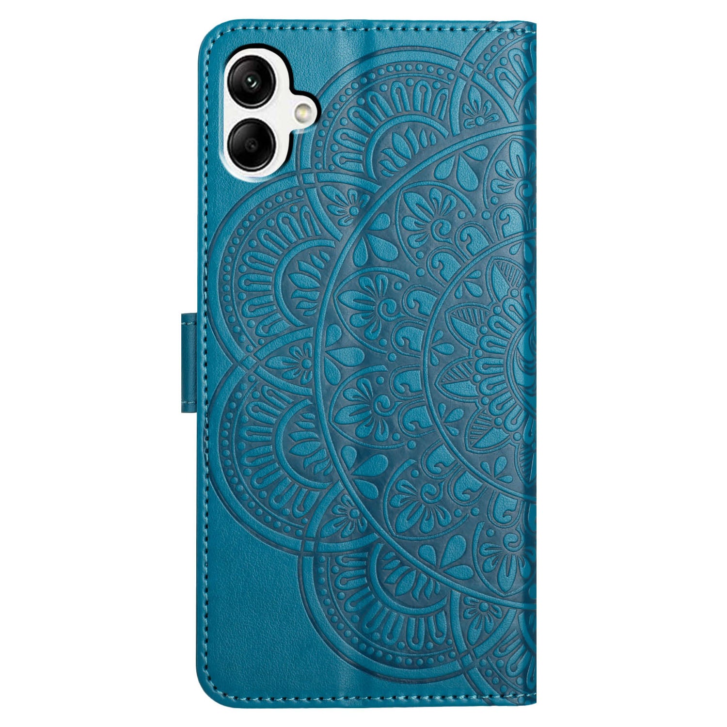 For Samsung Galaxy A06 Leather Case with Card Slots Mandala Pattern Phone Cover Stand - Blue