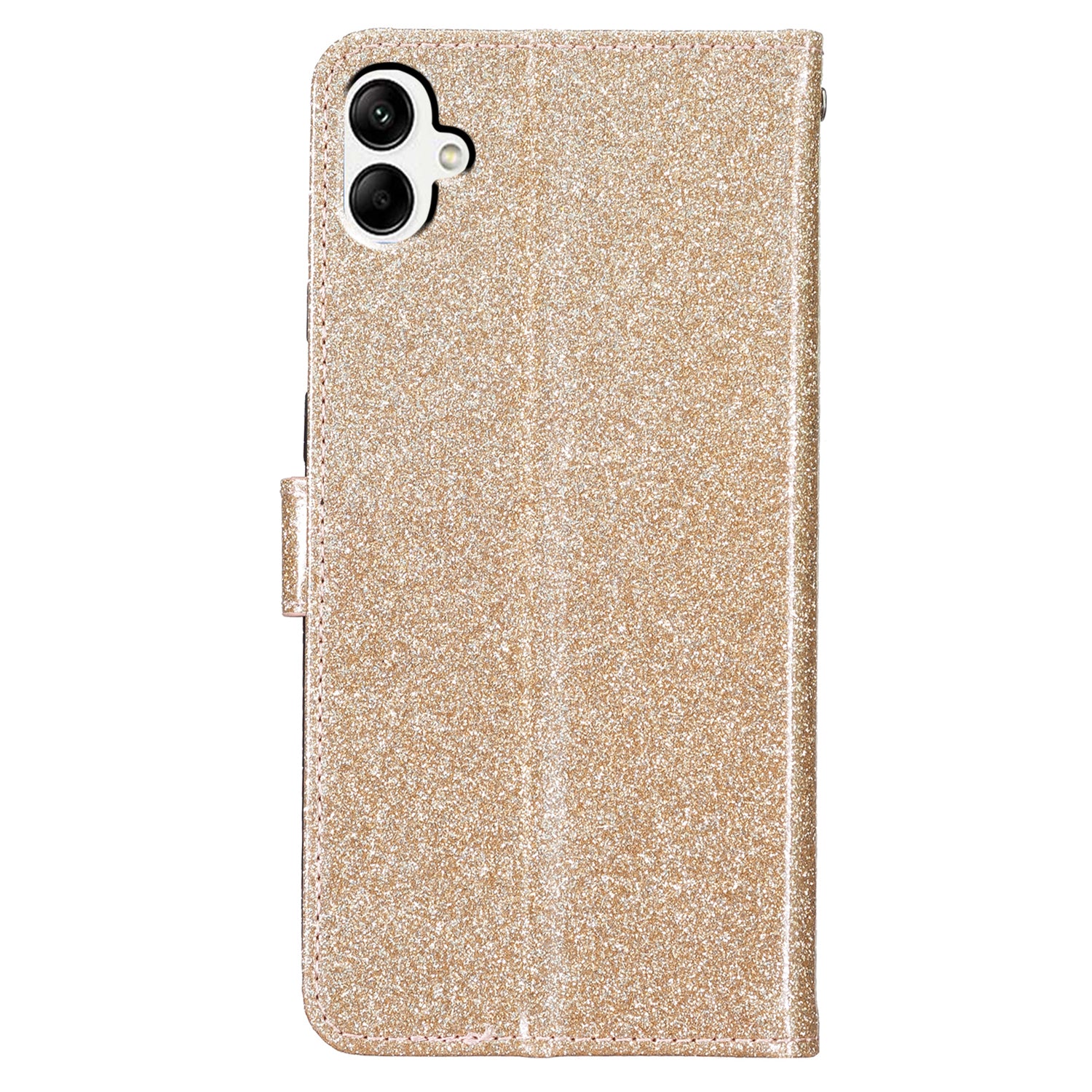 For Samsung Galaxy A06 Wallet Case Glitter Anti-Scratch Leather Phone Cover Stand - Gold