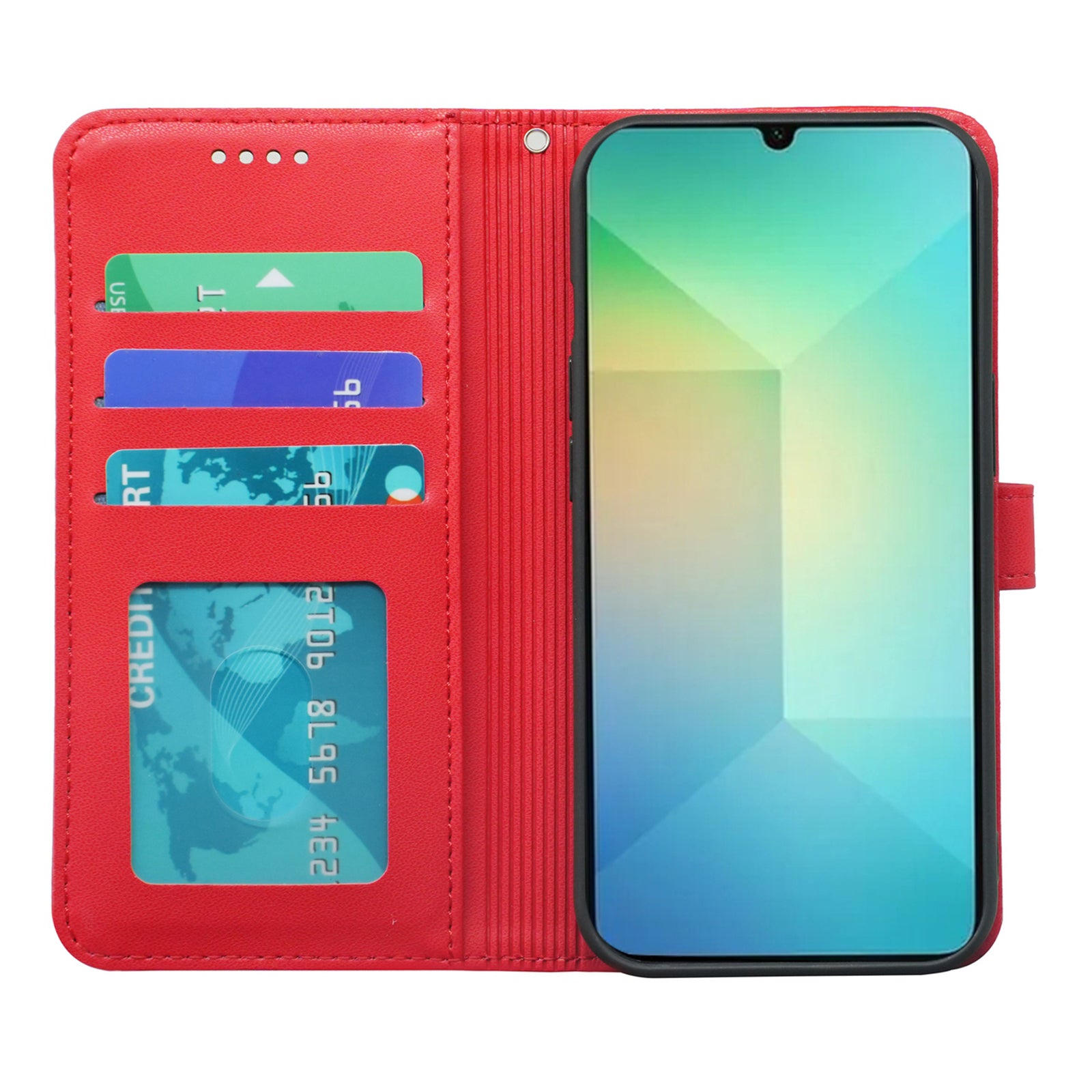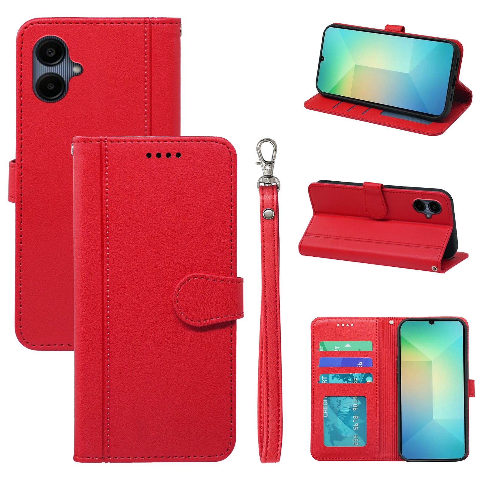 For Samsung Galaxy A06 Wallet Case Magnetic Snap Leather Phone Cover with Strap - Red