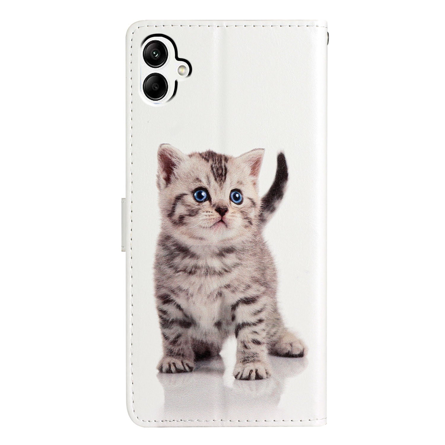 For Samsung Galaxy A06 Wallet Case PU Leather Pattern Printing Stand Phone Cover with Strap - Cute Cat