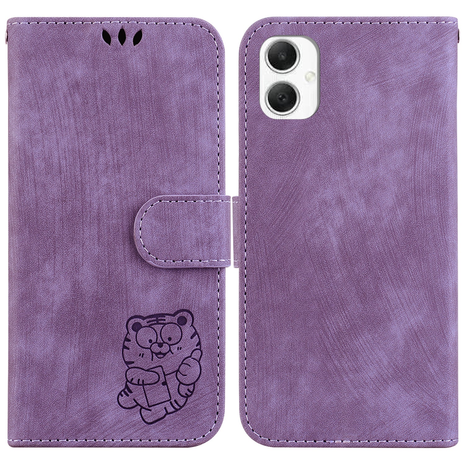 For Samsung Galaxy A06 Wallet Case Tiger Imprint Leather Shockproof Phone Cover - Purple