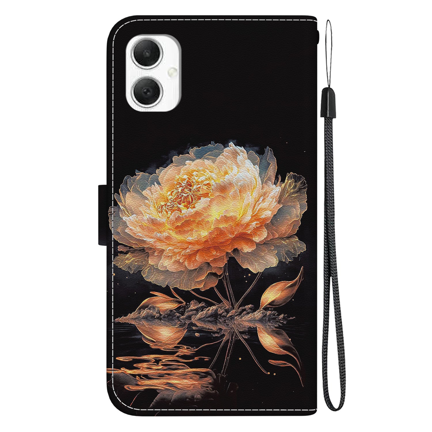 For Samsung Galaxy A06 Wallet Phone Case Anti-Drop Leather Flip Cover Pattern Printing - Gold Peony