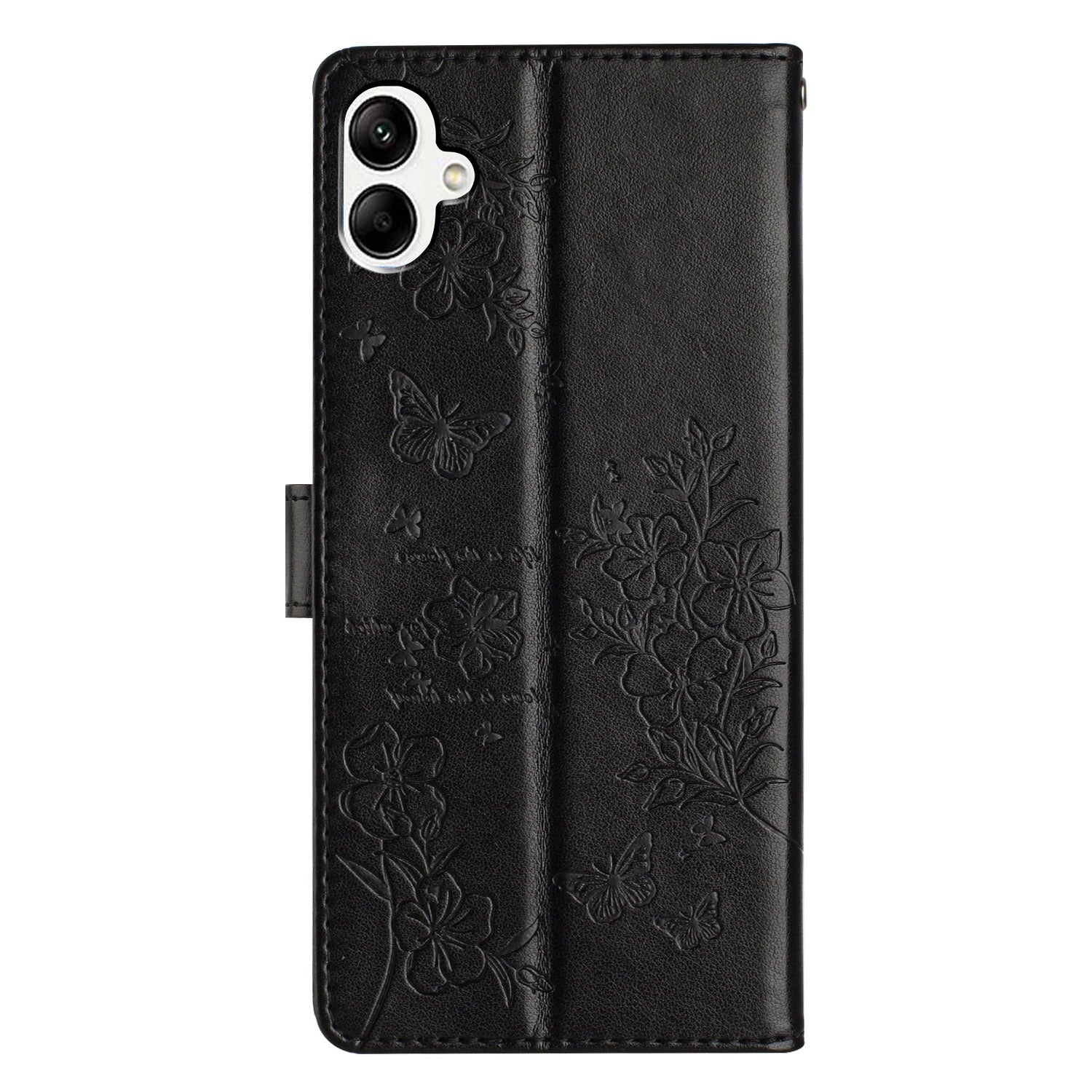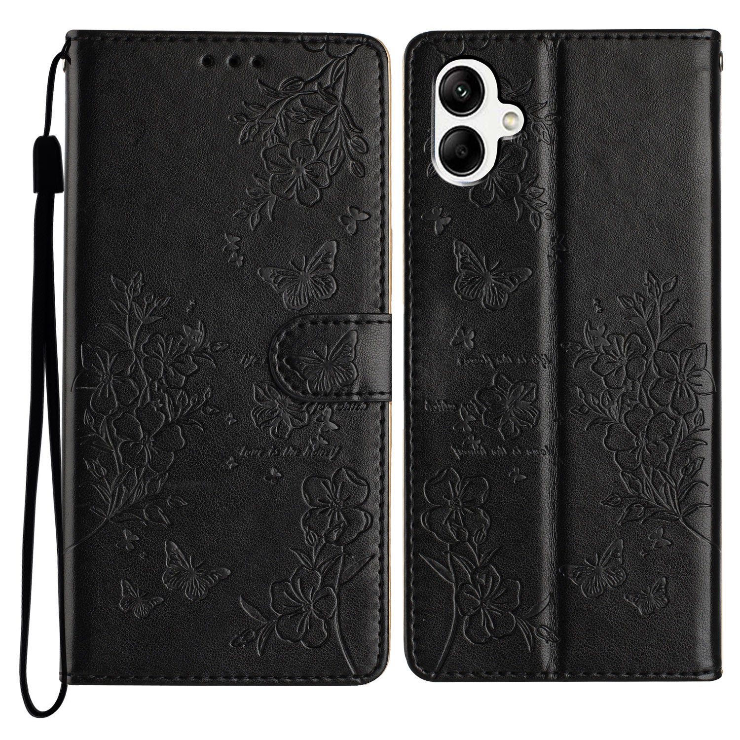 For Samsung Galaxy A06 Wallet Phone Case Butterfly Floral Imprint Leather Flip Cover - Black