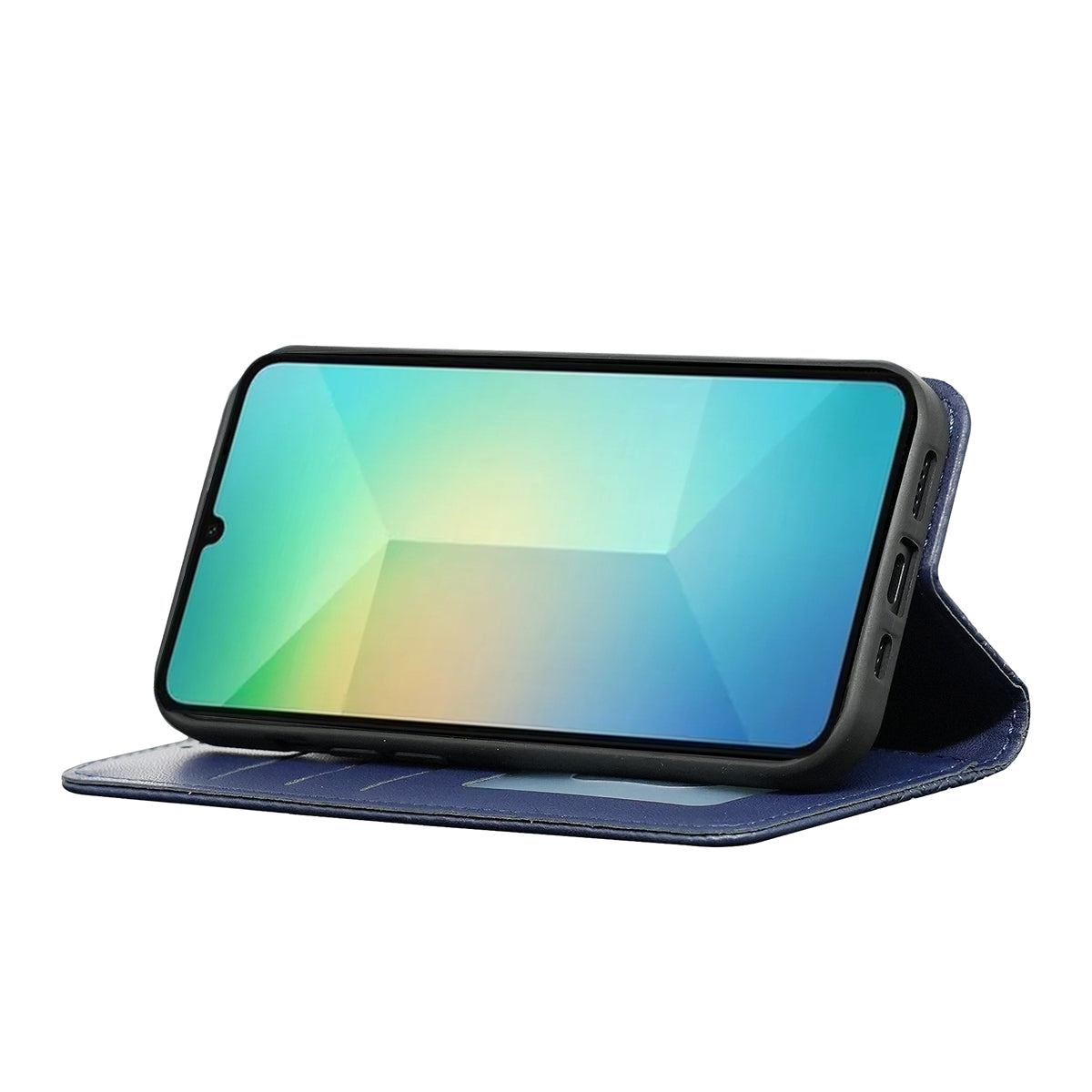 For Samsung Galaxy A06 Wallet Phone Case Strong Magnetic Checkered Pattern Imprint Leather Flip Cover - Blue