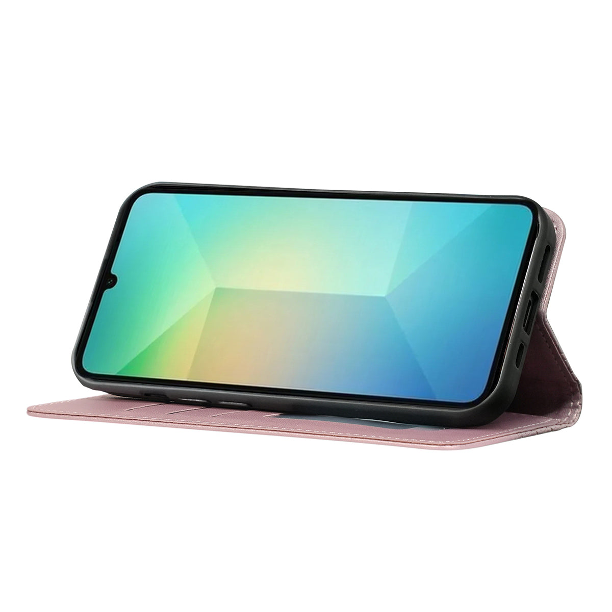 For Samsung Galaxy A06 Wallet Phone Case Strong Magnetic Checkered Pattern Imprint Leather Flip Cover - Rose Gold