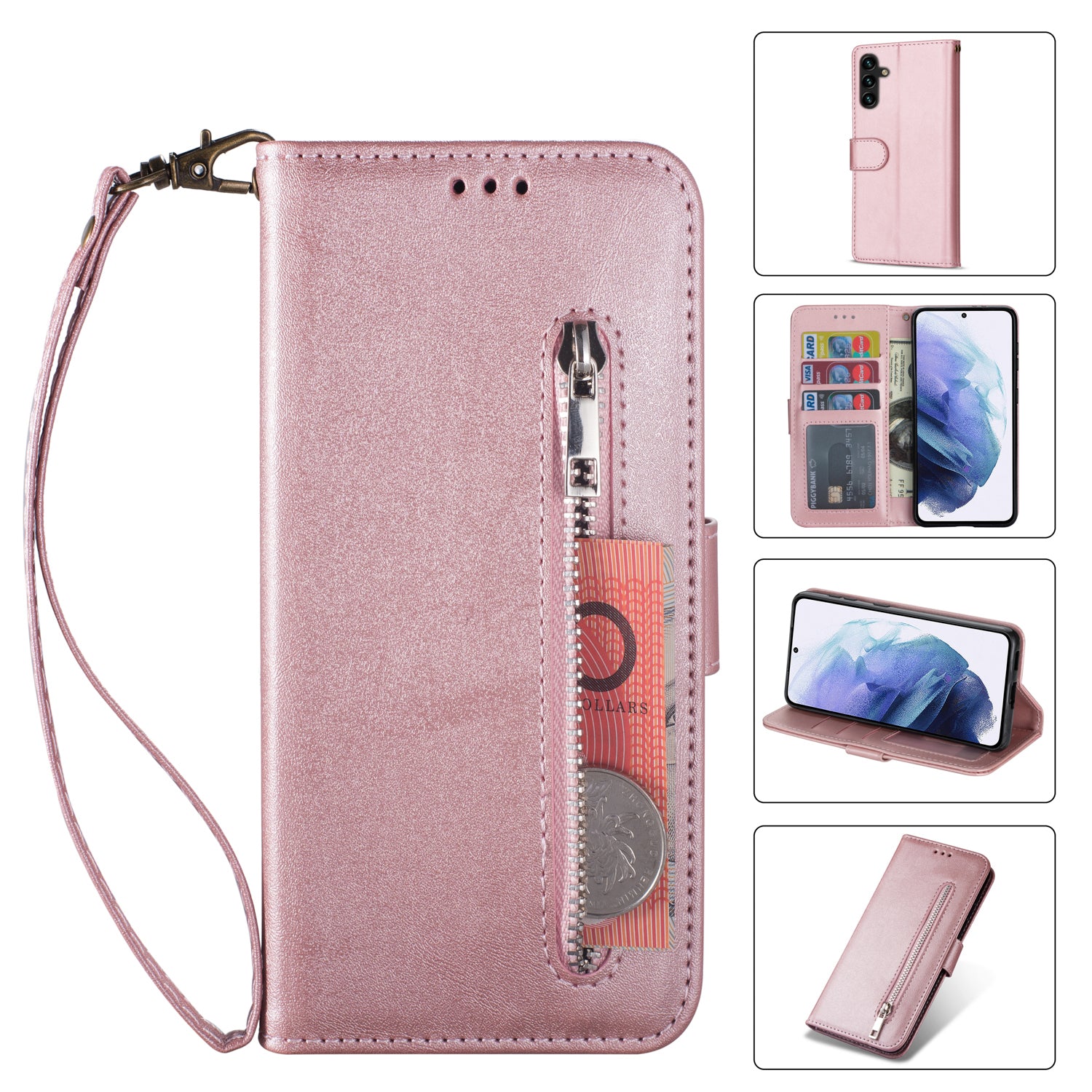 For Samsung Galaxy A16 4G / 5G Case Anti-Scratch Zipper Wallet Leather Phone Cover - Rose Gold