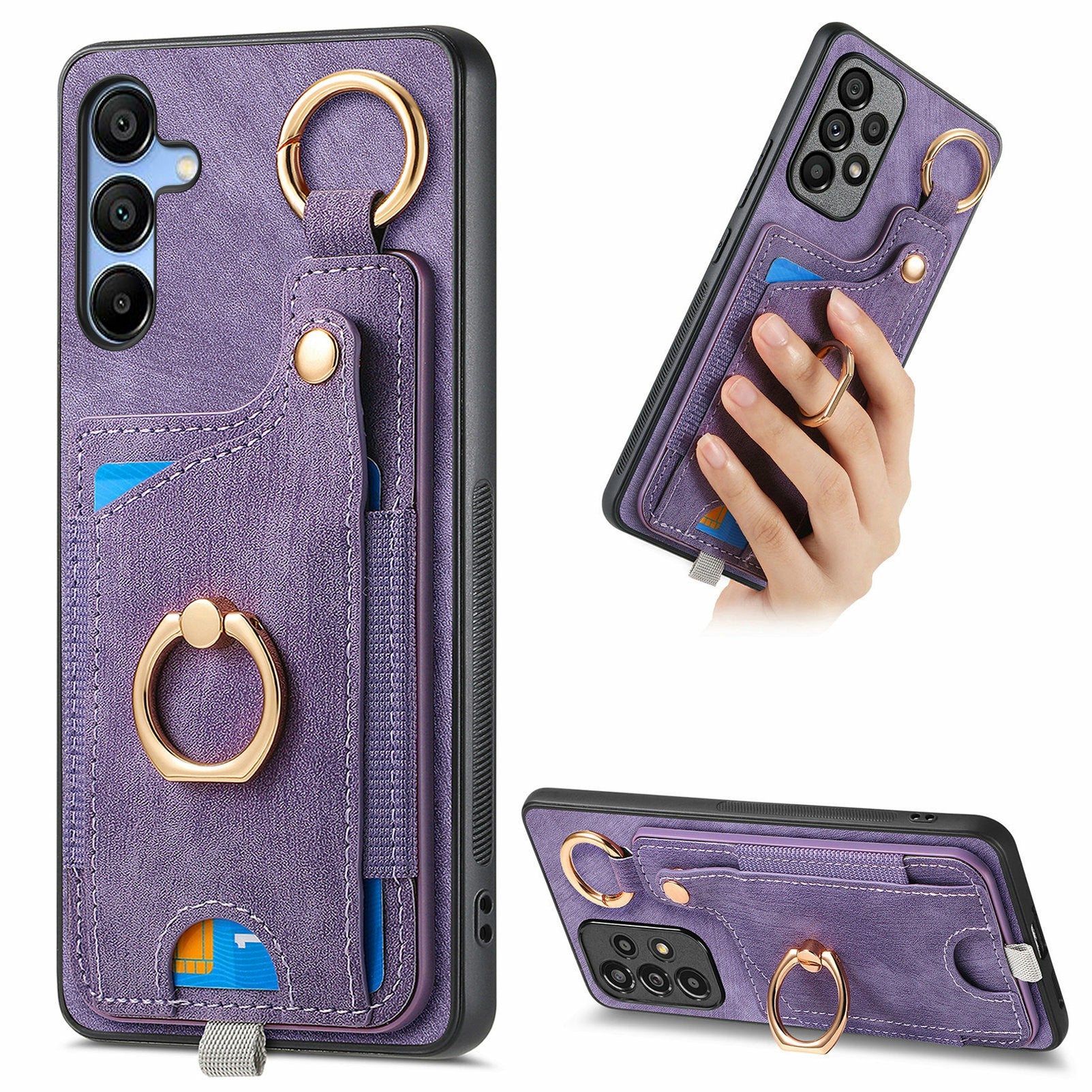 For Samsung Galaxy A16 4G / 5G Case Card Slots Leather+TPU Phone Cover with Ring Buckle - Purple