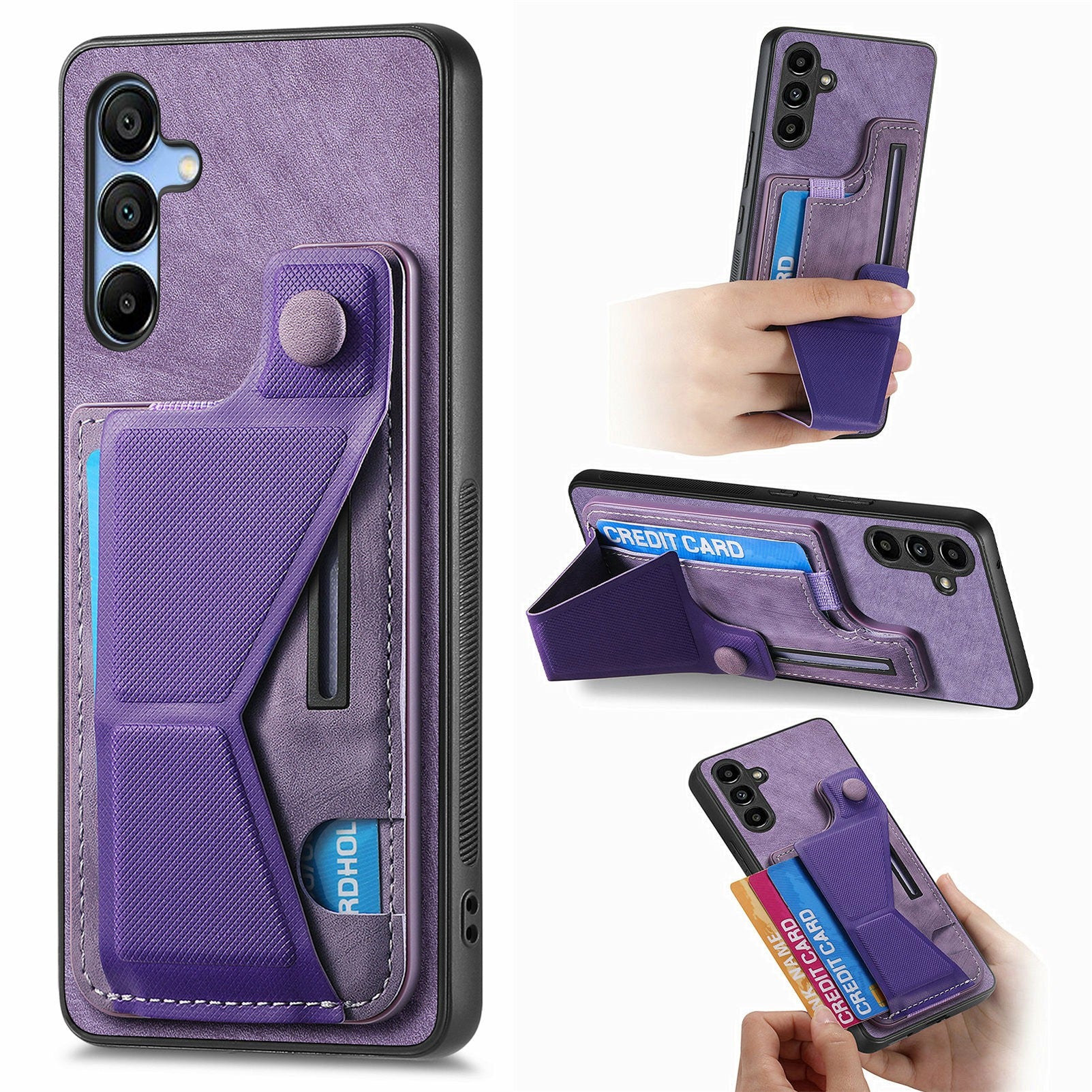For Samsung Galaxy A16 4G / 5G Case Retro Leather Back Cover Card Slot Side Kickstand - Purple