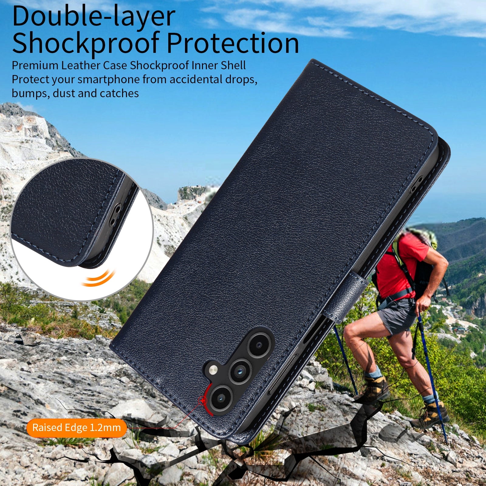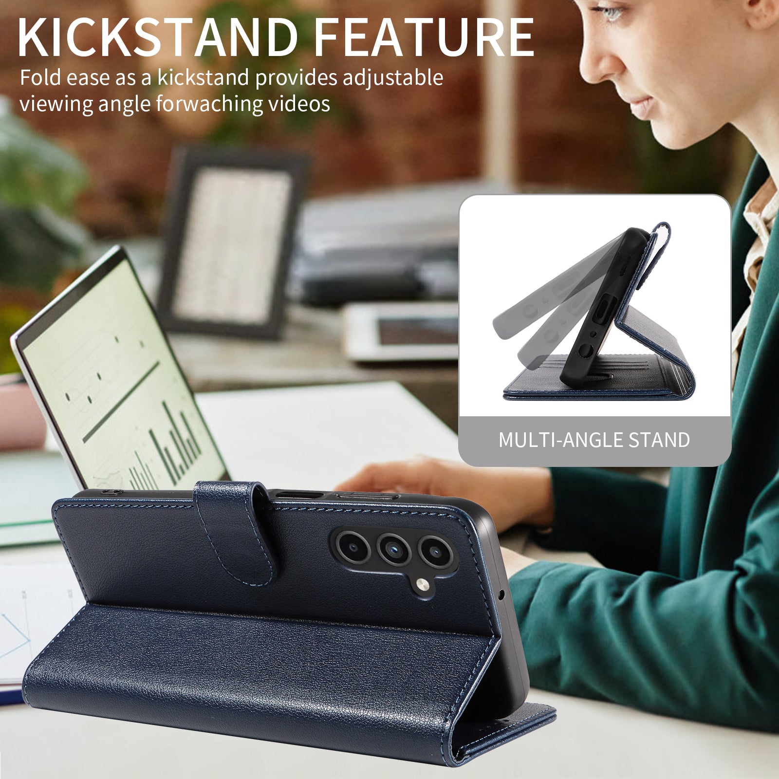 For Samsung Galaxy A16 4G  /  A16 5G Leather Case Litchi Texture RFID Blocking Wallet Stand Phone Cover - Blue
