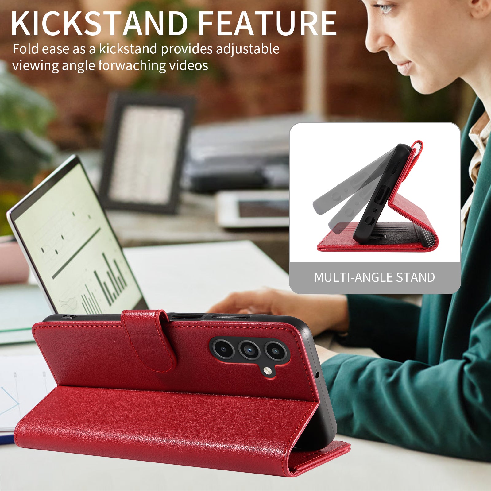 For Samsung Galaxy A16 4G  /  A16 5G Leather Case Litchi Texture RFID Blocking Wallet Stand Phone Cover - Wine Red