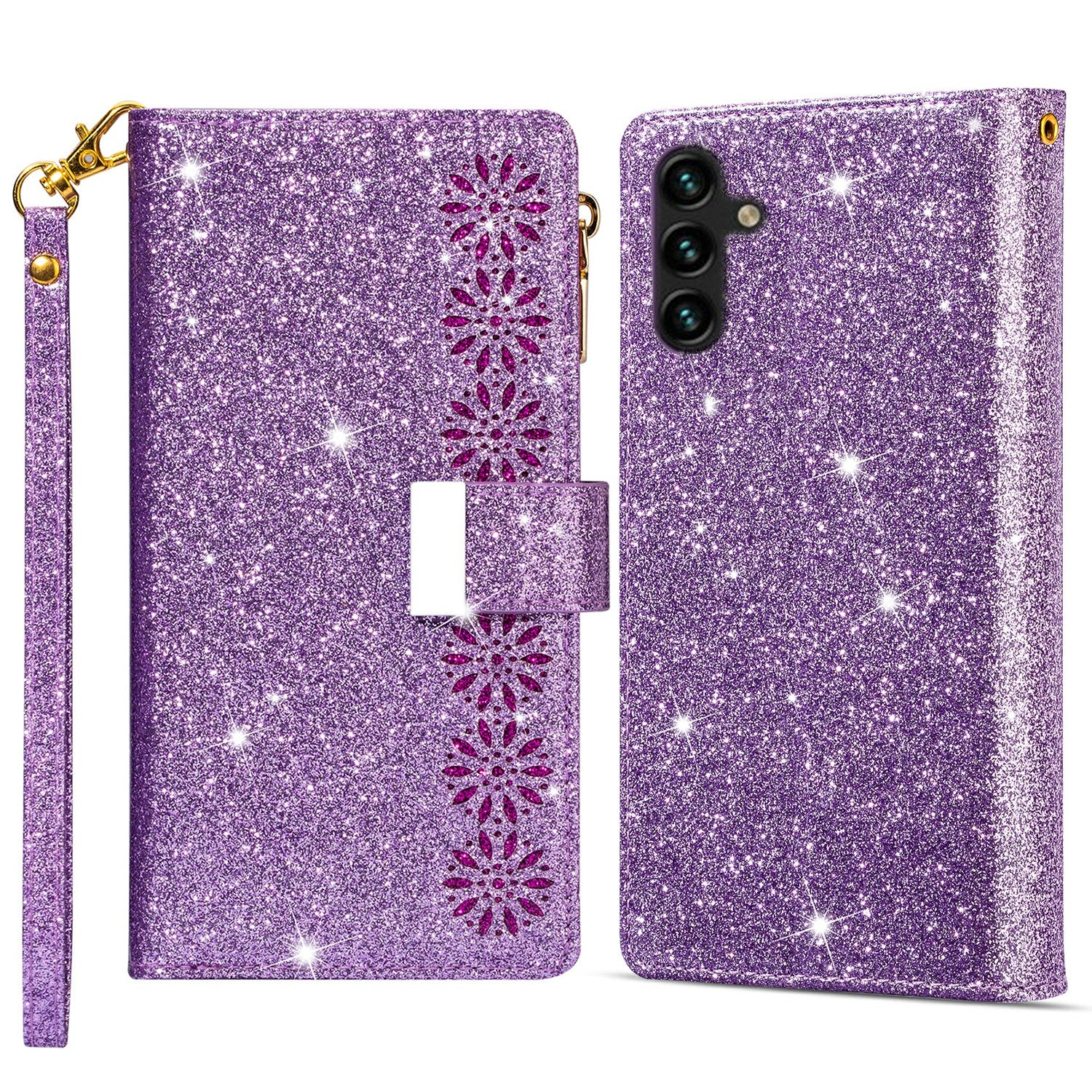 For Samsung Galaxy A16 5G  /  4G Case Starry Sky Carving Leather Wallet Phone Cover - Purple