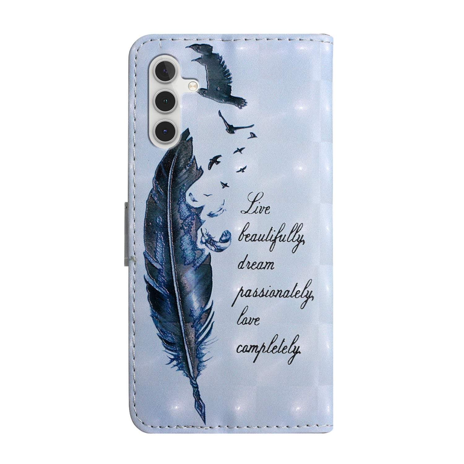 For Samsung Galaxy A16 5G / A16 4G Case 3D Creative Pattern PU Leather Stand Phone Cover - Blue Feather