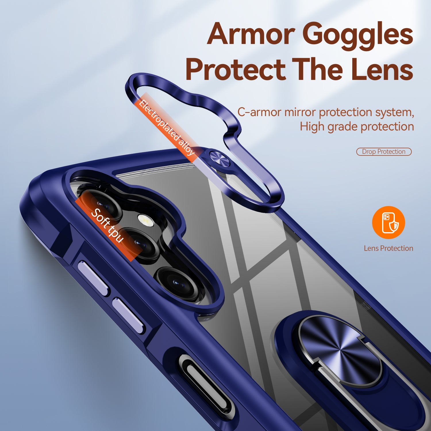 For Samsung Galaxy A16 5G / A16 4G Case Alloy Lens Frame PC + TPU Kickstand Phone Back Cover - Blue