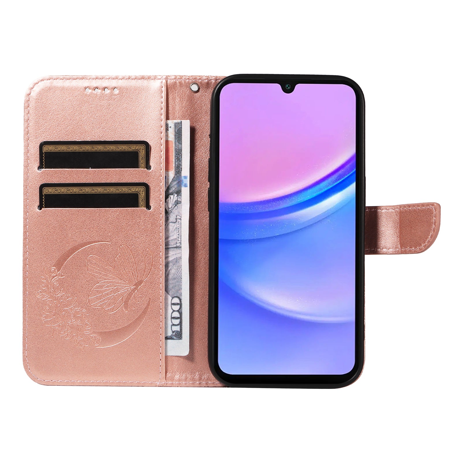 For Samsung Galaxy A16 5G / A16 4G Case Butterfly Pattern Leather Wallet Flip Phone Cover - Rose Gold