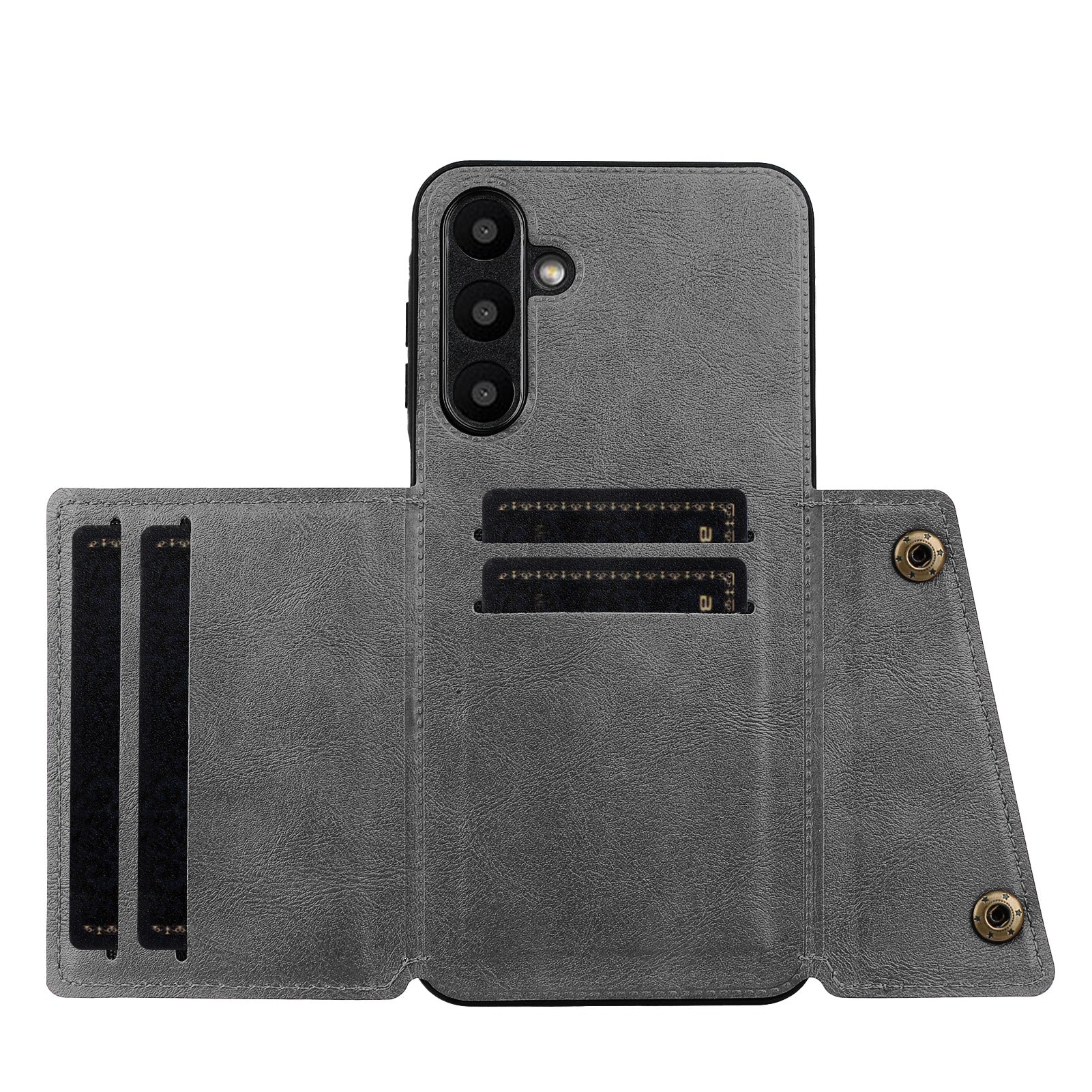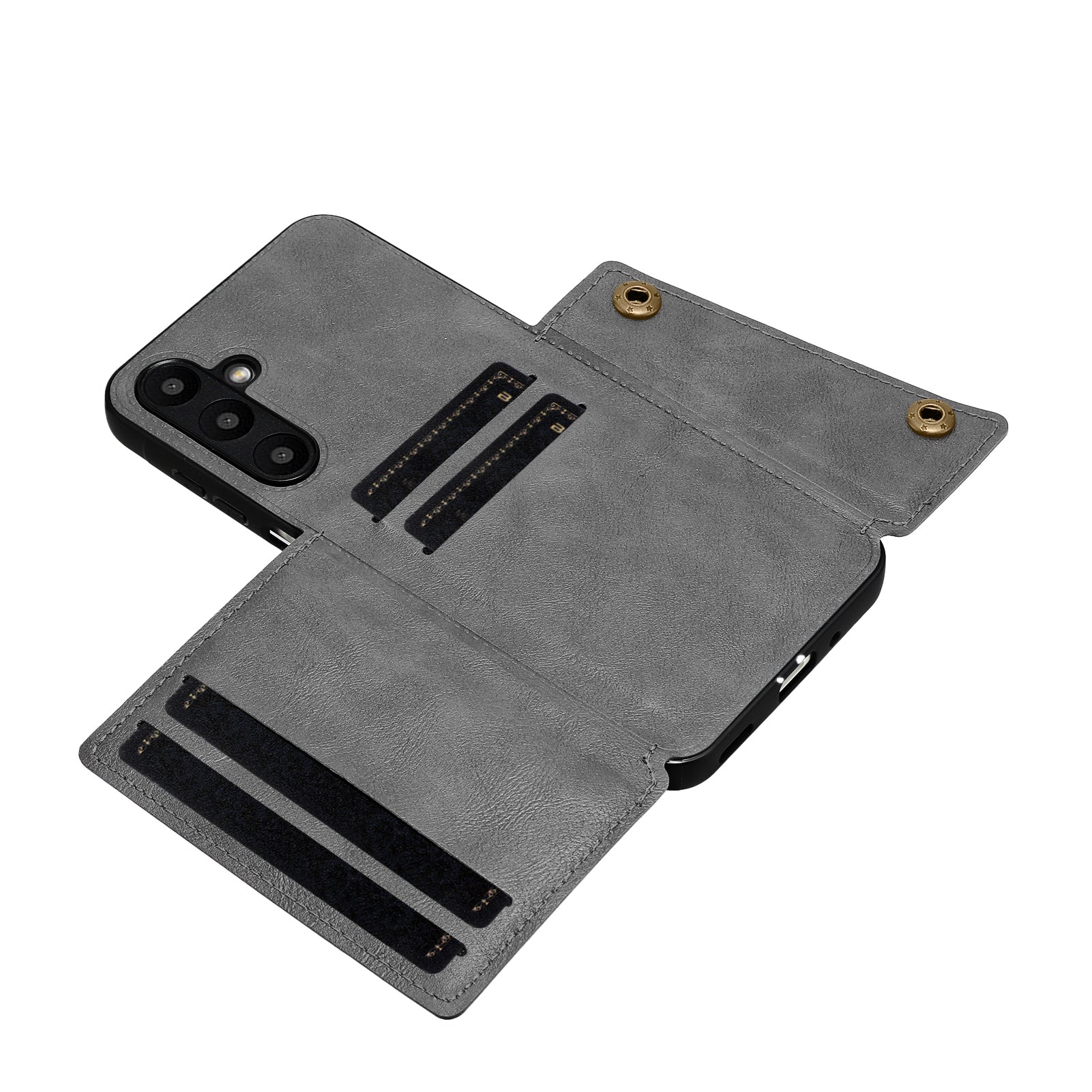 For Samsung Galaxy A16 5G / A16 4G Case Card Slots Kickstand Leather+TPU Phone Cover - Grey