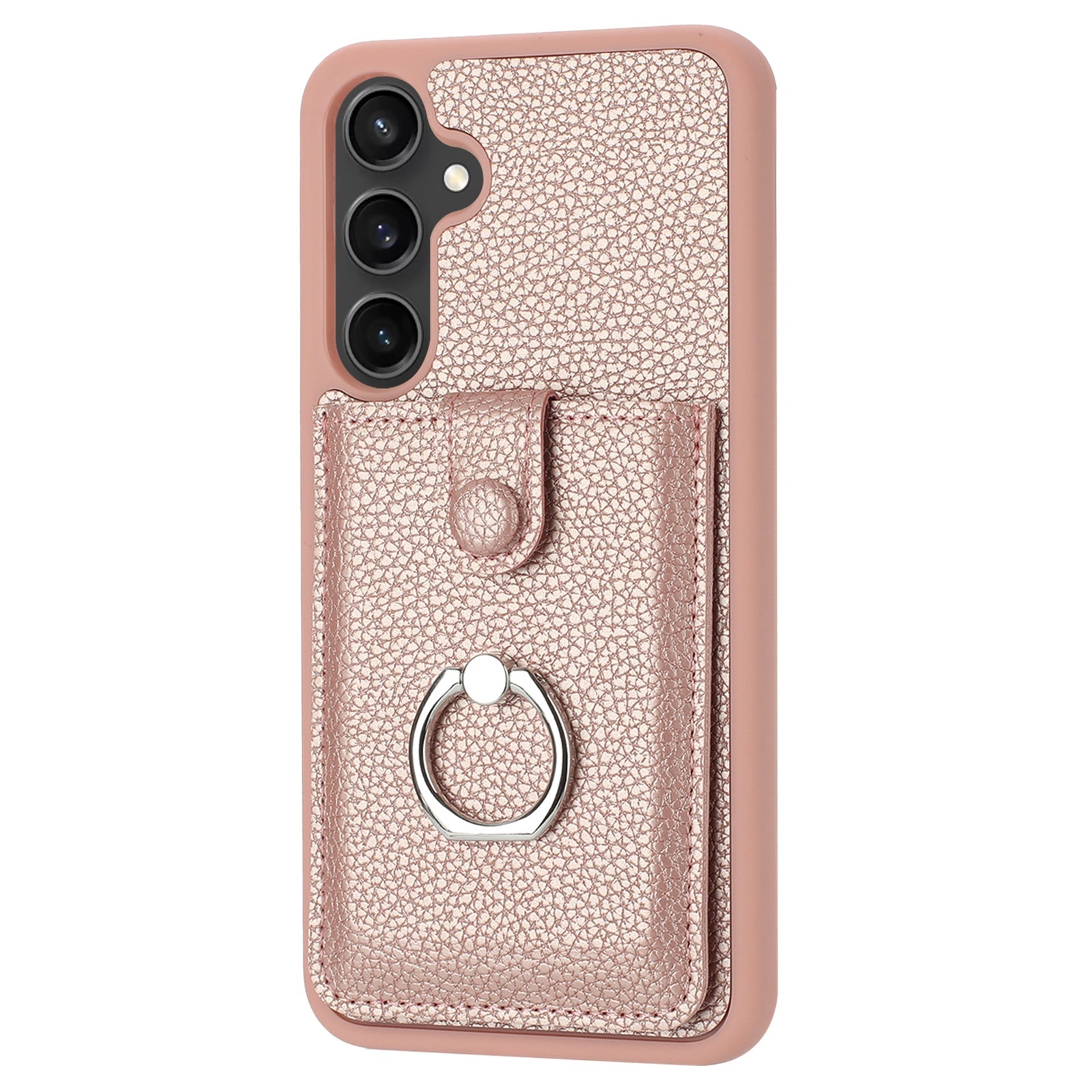 For Samsung Galaxy A16 5G / A16 4G Case Drawing Type Card Slots Litchi Texture Leather Back Cover with Ring Kickstand - Rose Gold