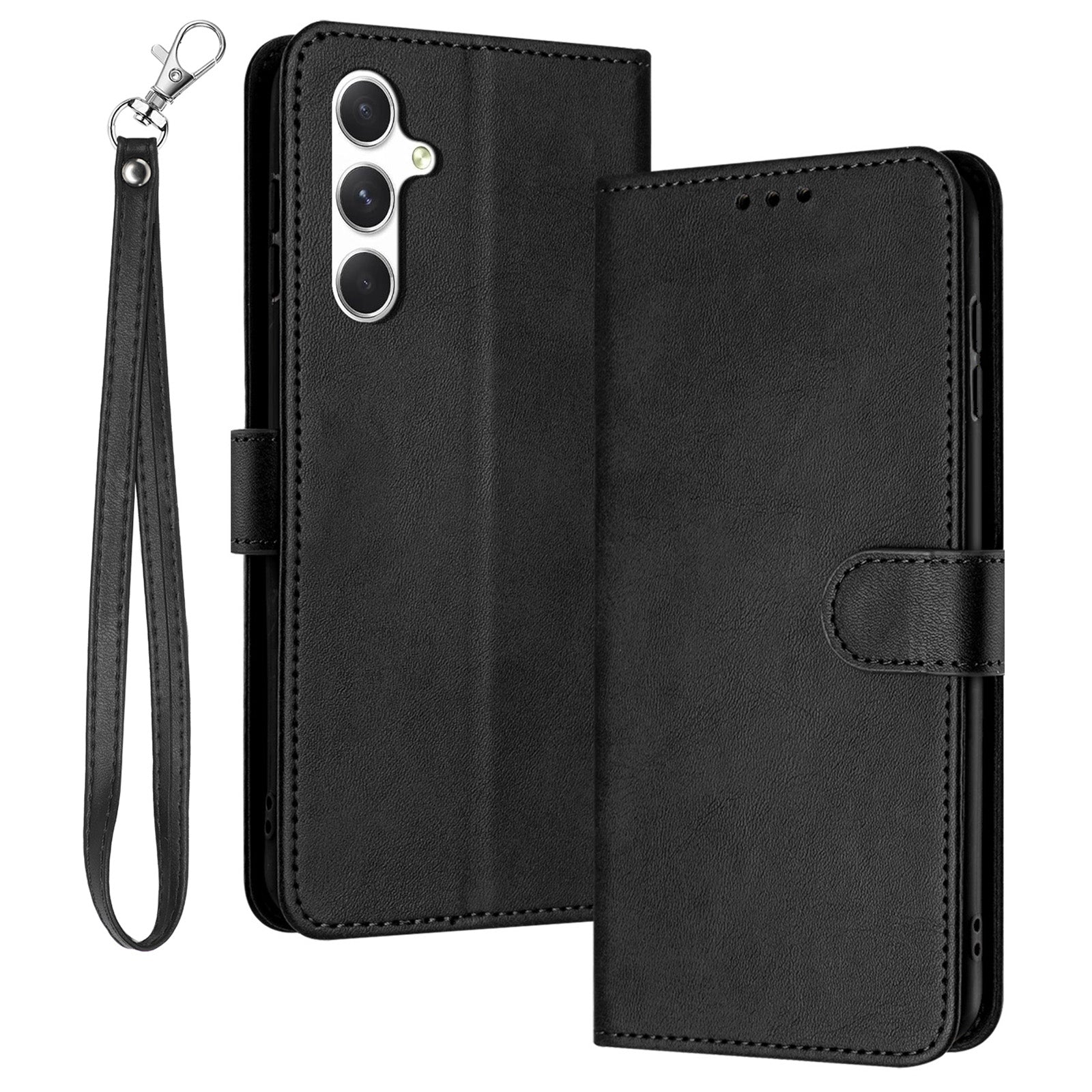 For Samsung Galaxy A16 5G / A16 4G Case Flip Stand PU Leather Wallet Phone Cover Calf Texture - Black
