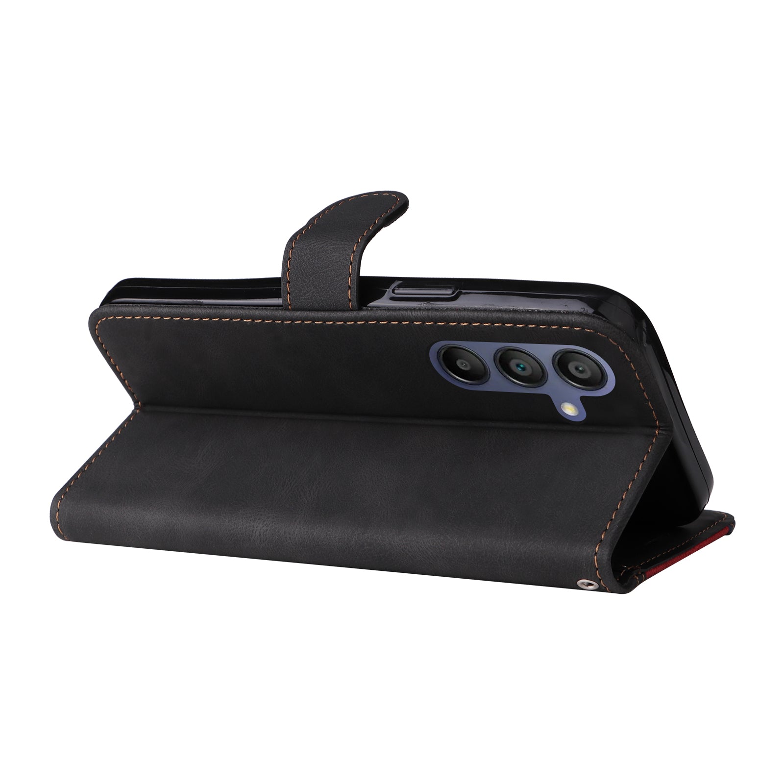 For Samsung Galaxy A16 5G / A16 4G Case Flip Wallet Leather Phone Cover 3 Color Splicing - Black
