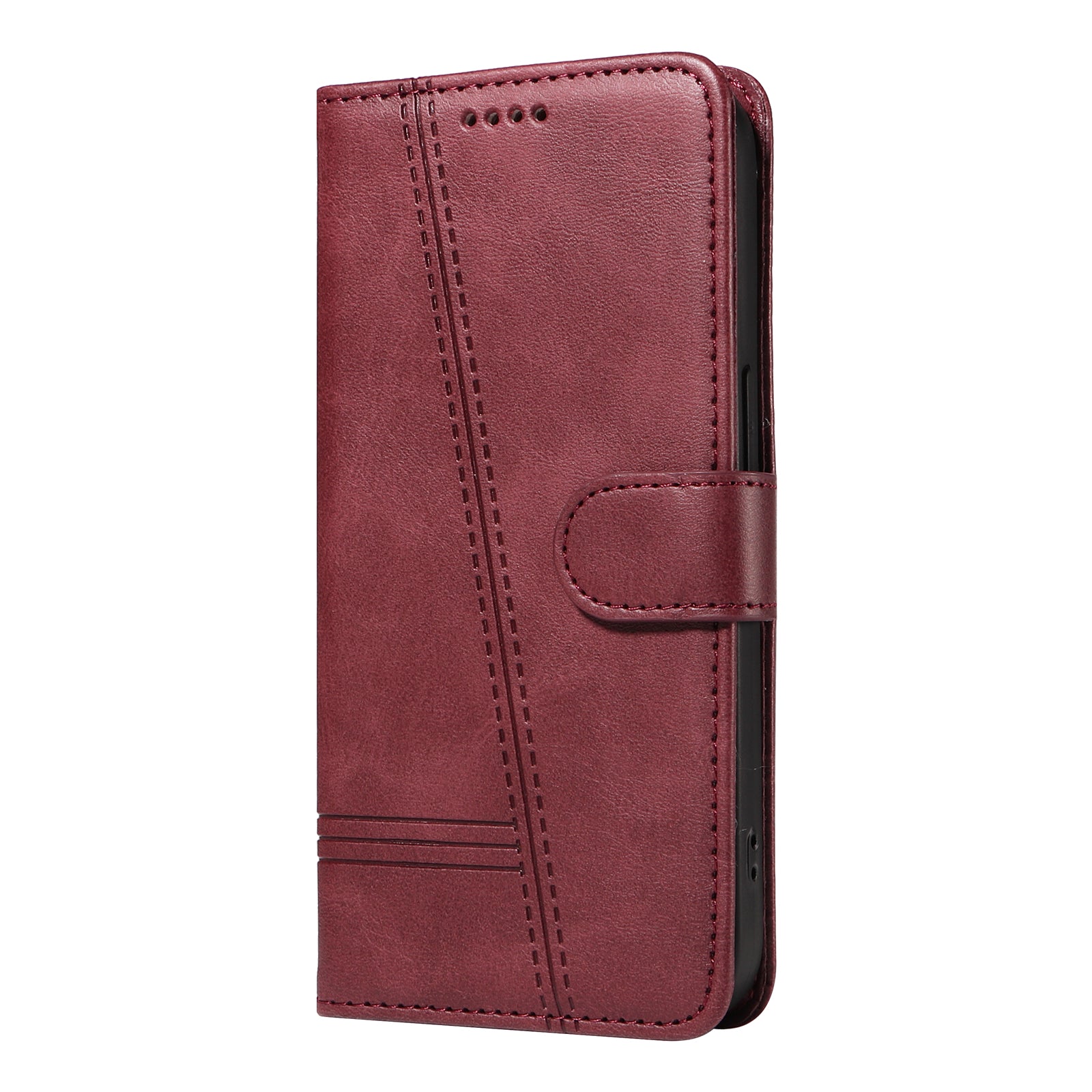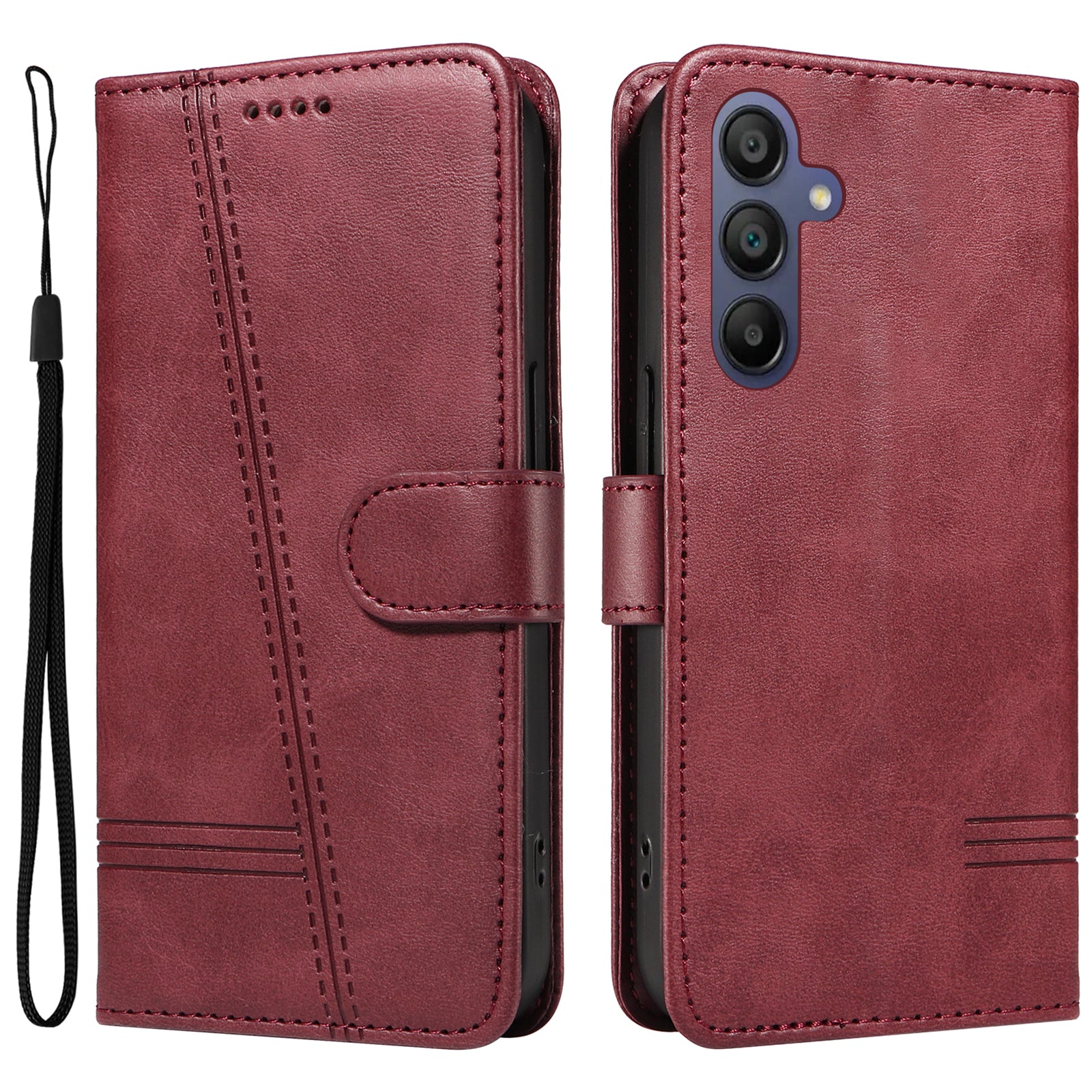 For Samsung Galaxy A16 5G / A16 4G Case Flip Wallet T-Shape Lines Leather Phone Cover - Wine Red