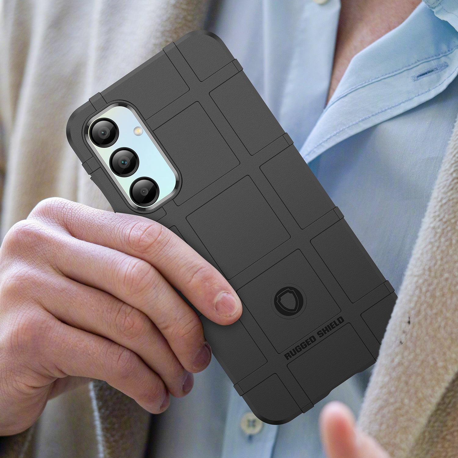 •Rugged Design and Non-Slip Texture: The phone case features a rugged design with a grid pattern and a non-slip texture, ensuring a firm grip and stylish look