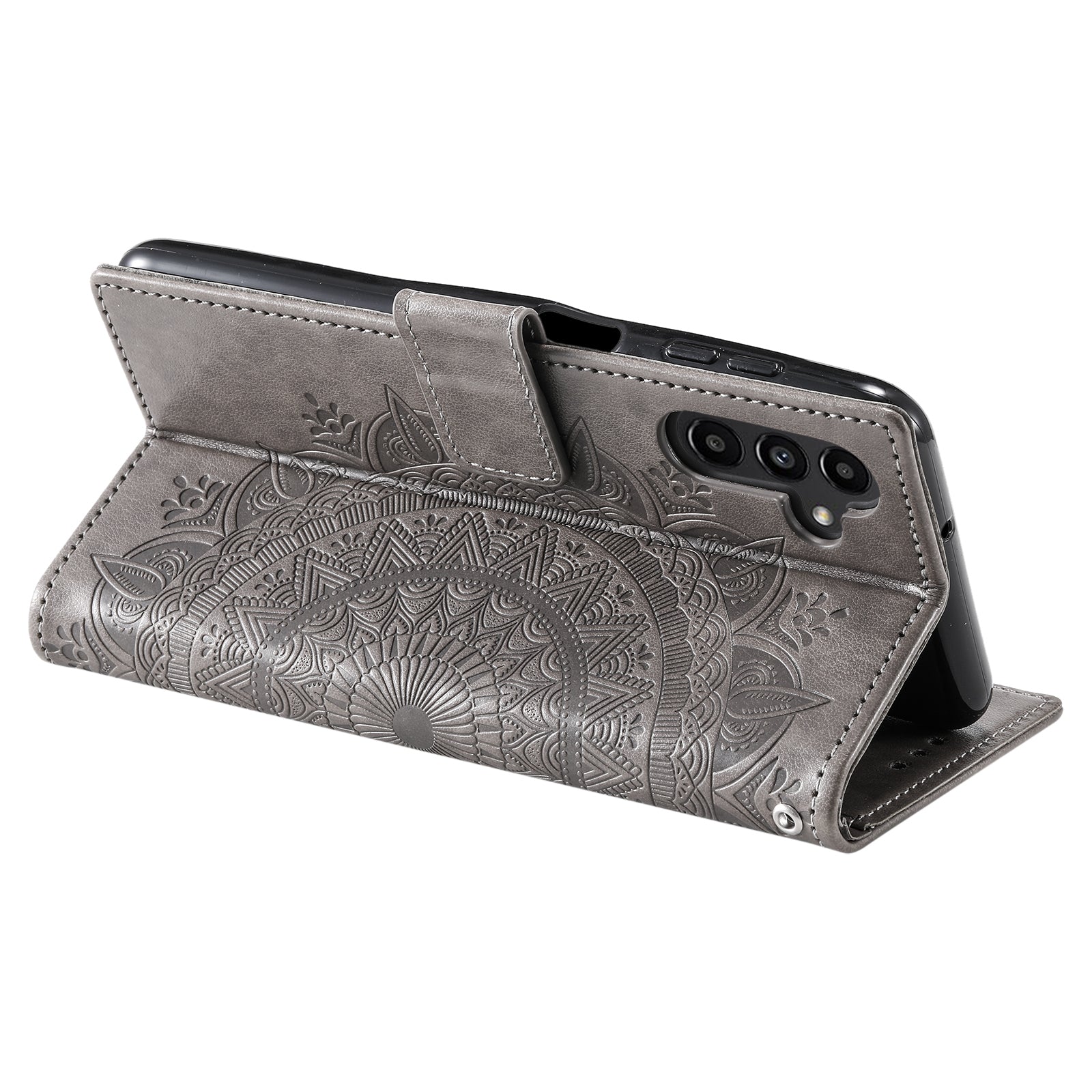 For Samsung Galaxy A16 5G / A16 4G Case Imprinted Totem PU Leather Wallet Stand Phone Cover - Grey