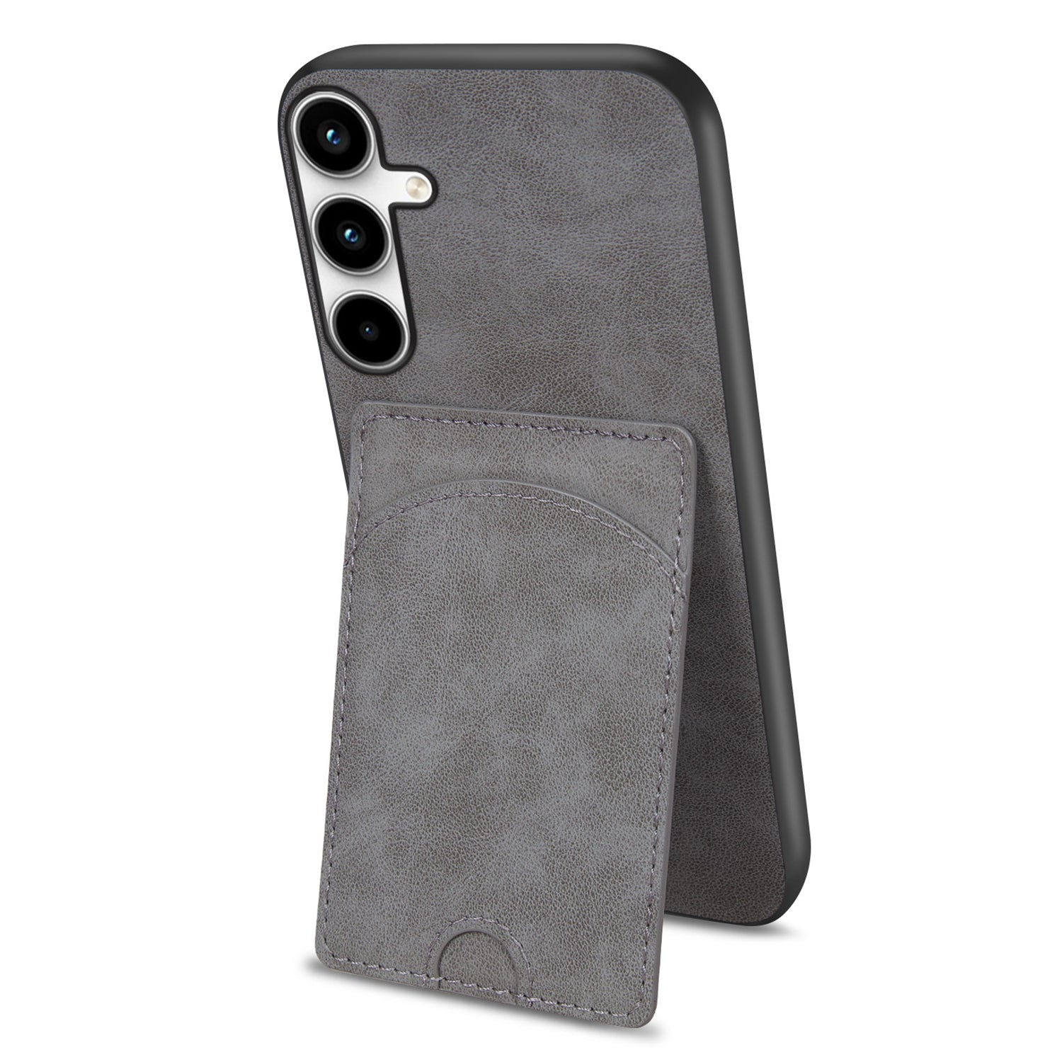 For Samsung Galaxy A16 5G / A16 4G Case Kickstand Leather Coated TPU Phone Cover with Card Slot - Grey