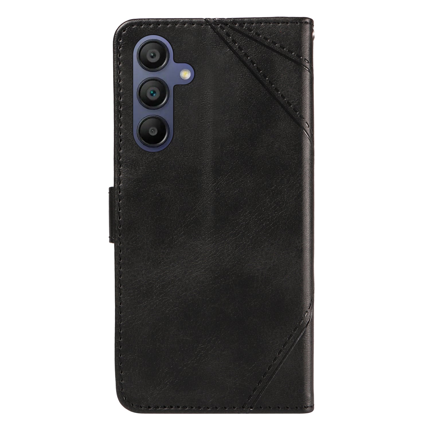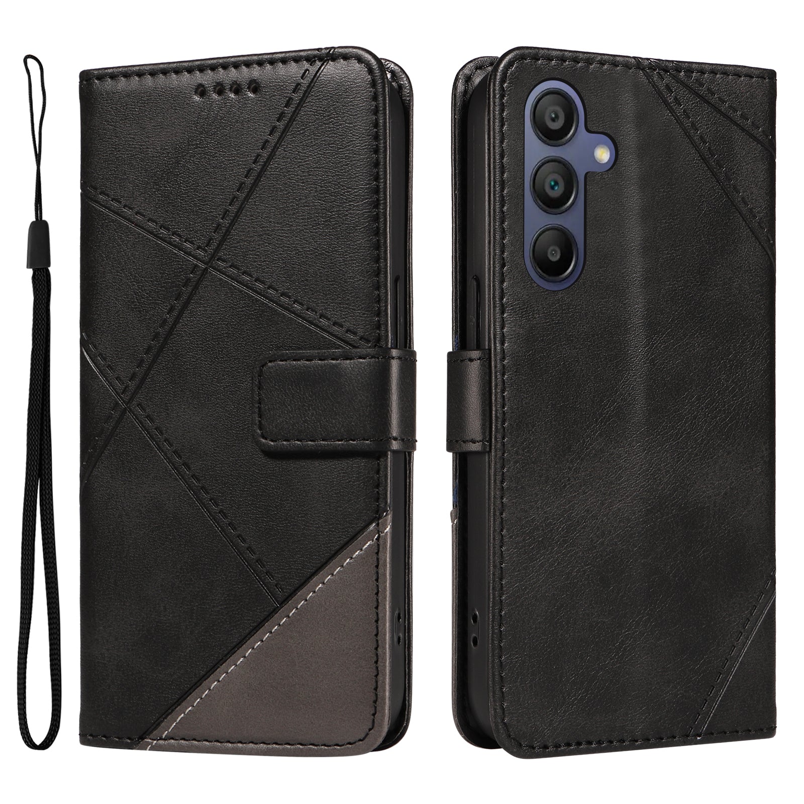 For Samsung Galaxy A16 5G / A16 4G Case Leather Geometric Line Wallet Phone Cover with Wrist Strap - Black