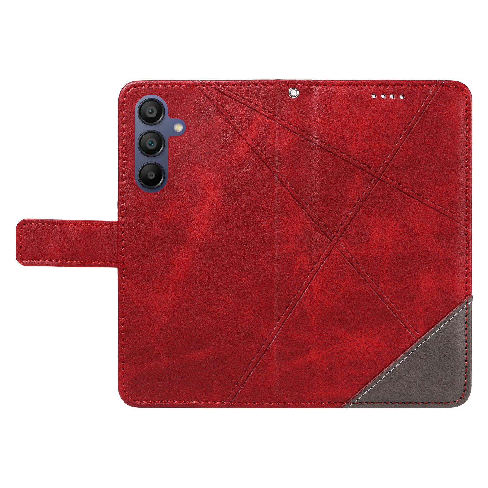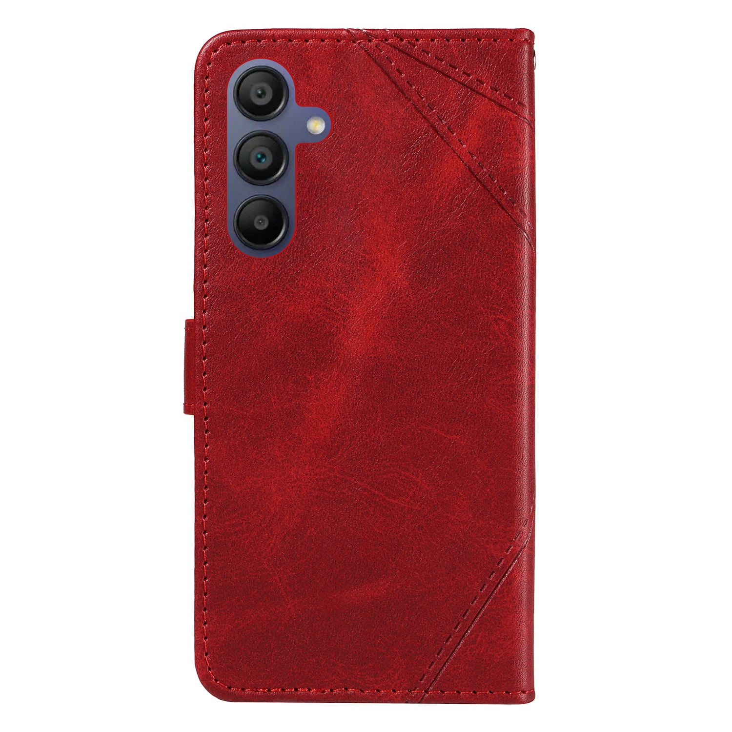 For Samsung Galaxy A16 5G / A16 4G Case Leather Geometric Line Wallet Phone Cover with Wrist Strap - Red