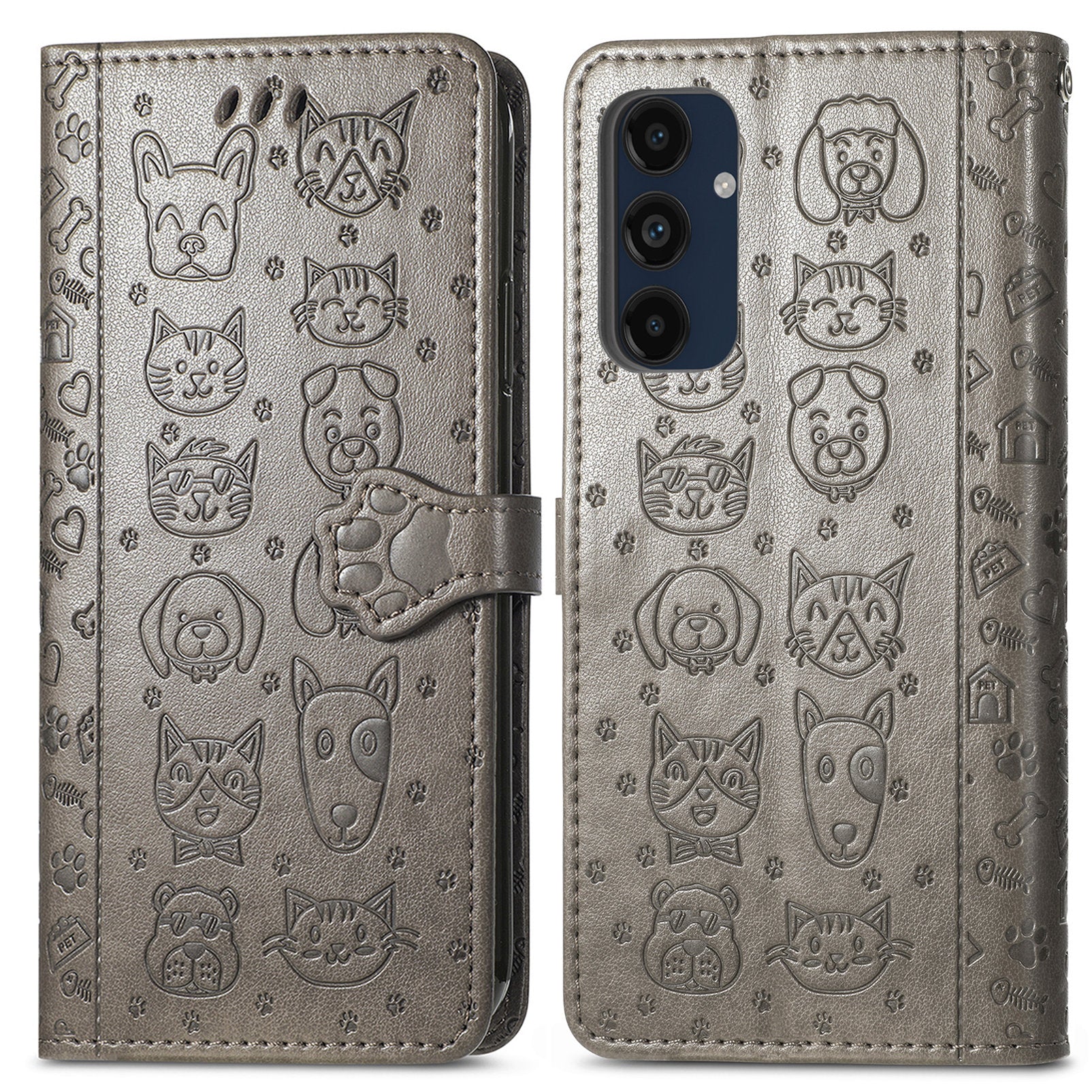 For Samsung Galaxy A16 5G / A16 4G Case Leather Wallet Flip Phone Cover Cute Cat Dog Pattern - Grey