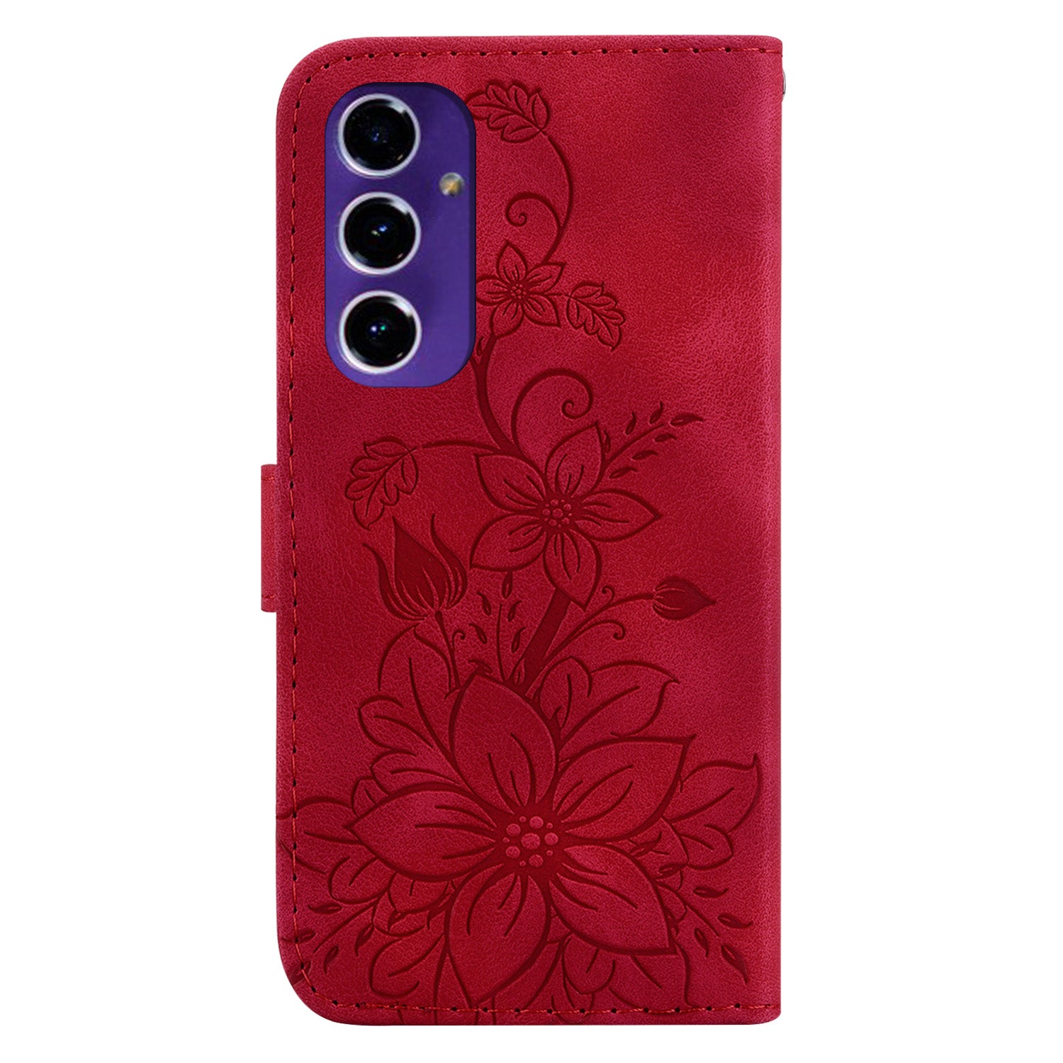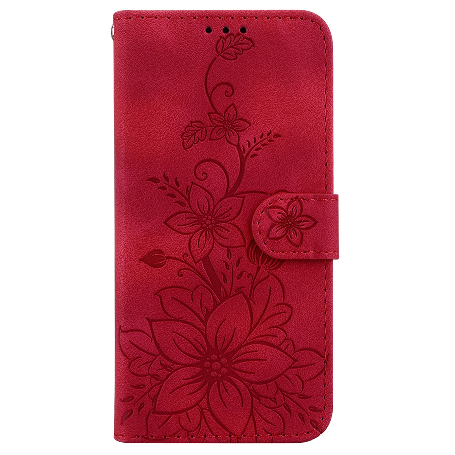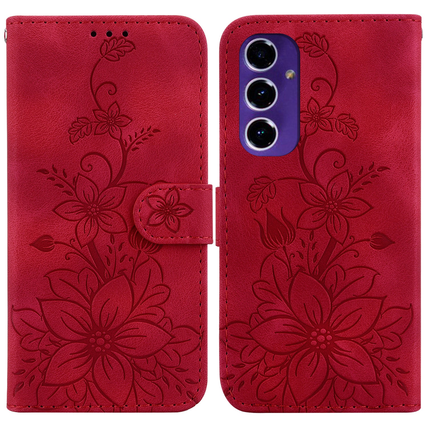For Samsung Galaxy A16 5G / A16 4G Case Lily Flower Imprint Leather Phone Cover with Stand - Red