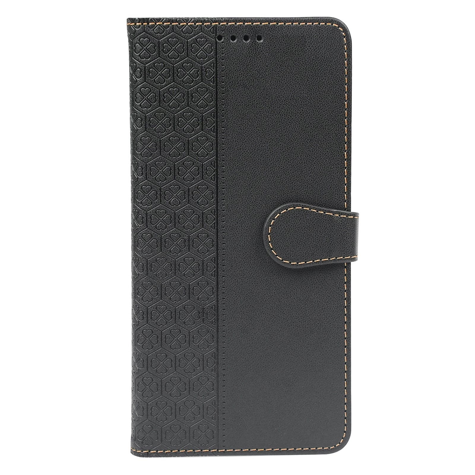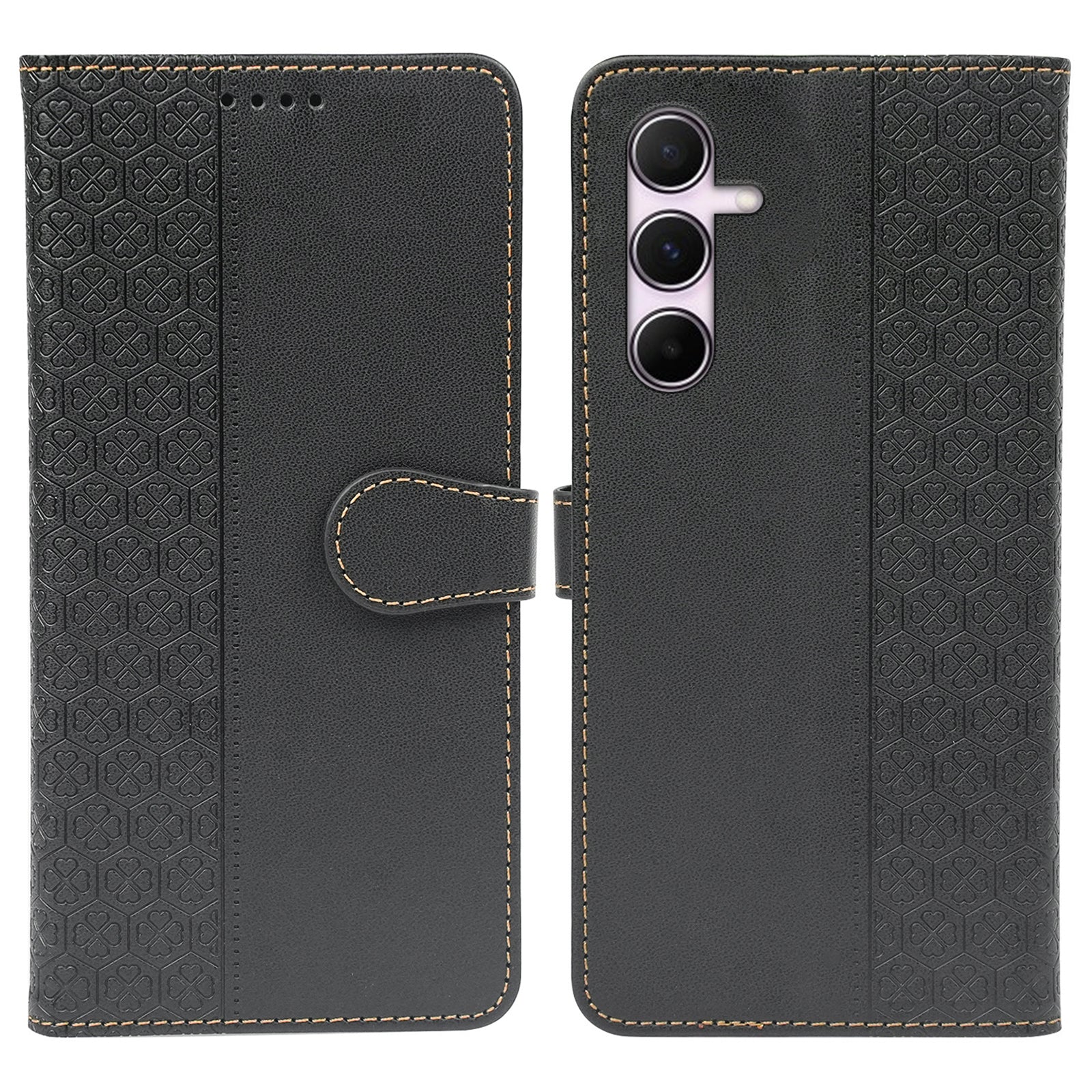 For Samsung Galaxy A16 5G / A16 4G Case Magnetic Clasp Four-Leaf Clover Leather Phone Cover - Black