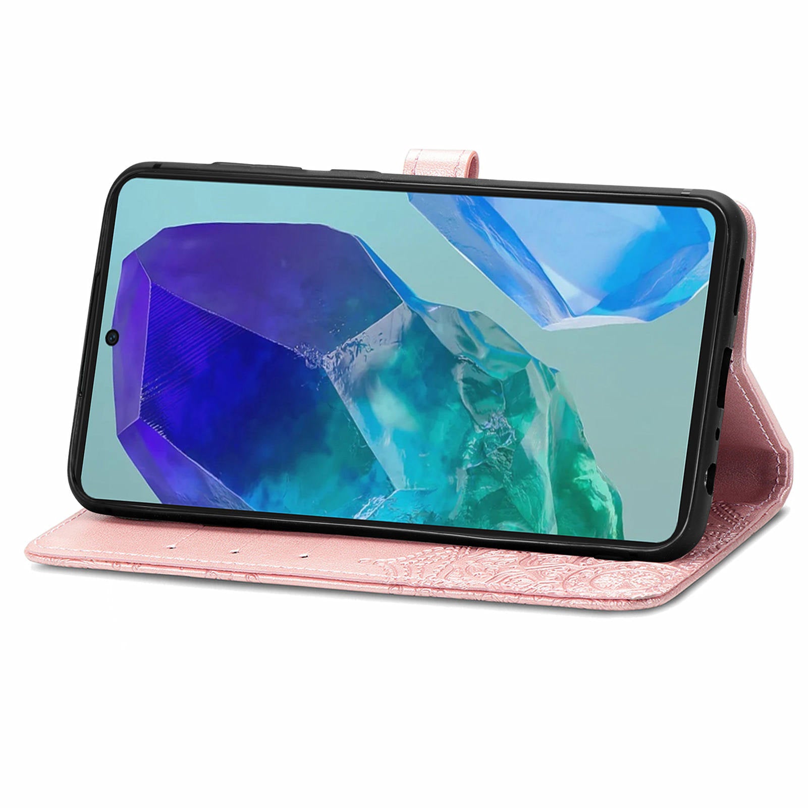 For Samsung Galaxy A16 5G / A16 4G Case Mandala Embossed Design Leather Wallet Phone Cover - Rose Gold