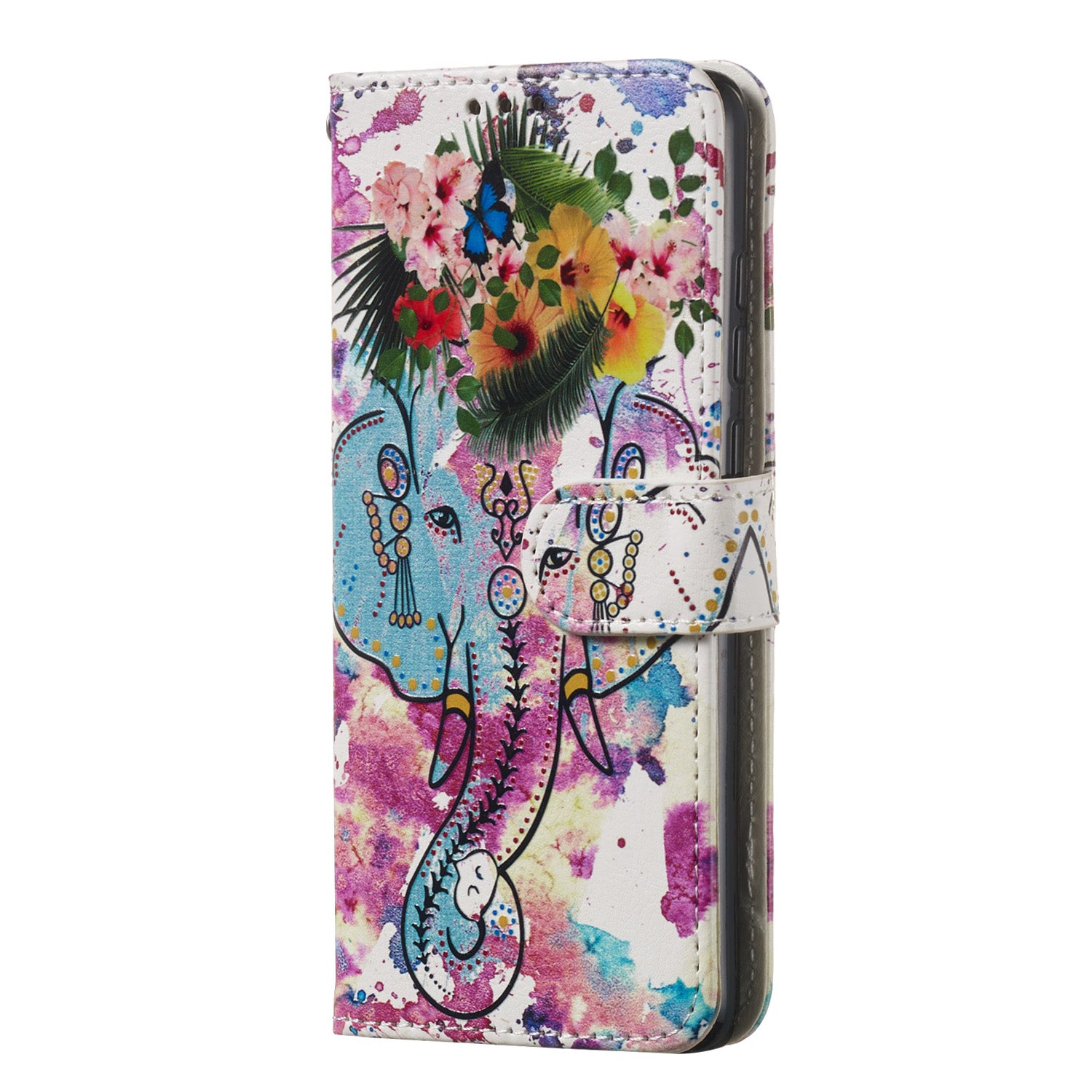 For Samsung Galaxy A16 5G / A16 4G Case Pattern Leather Wallet Phone Cover with Card Holder - Flower Elephant