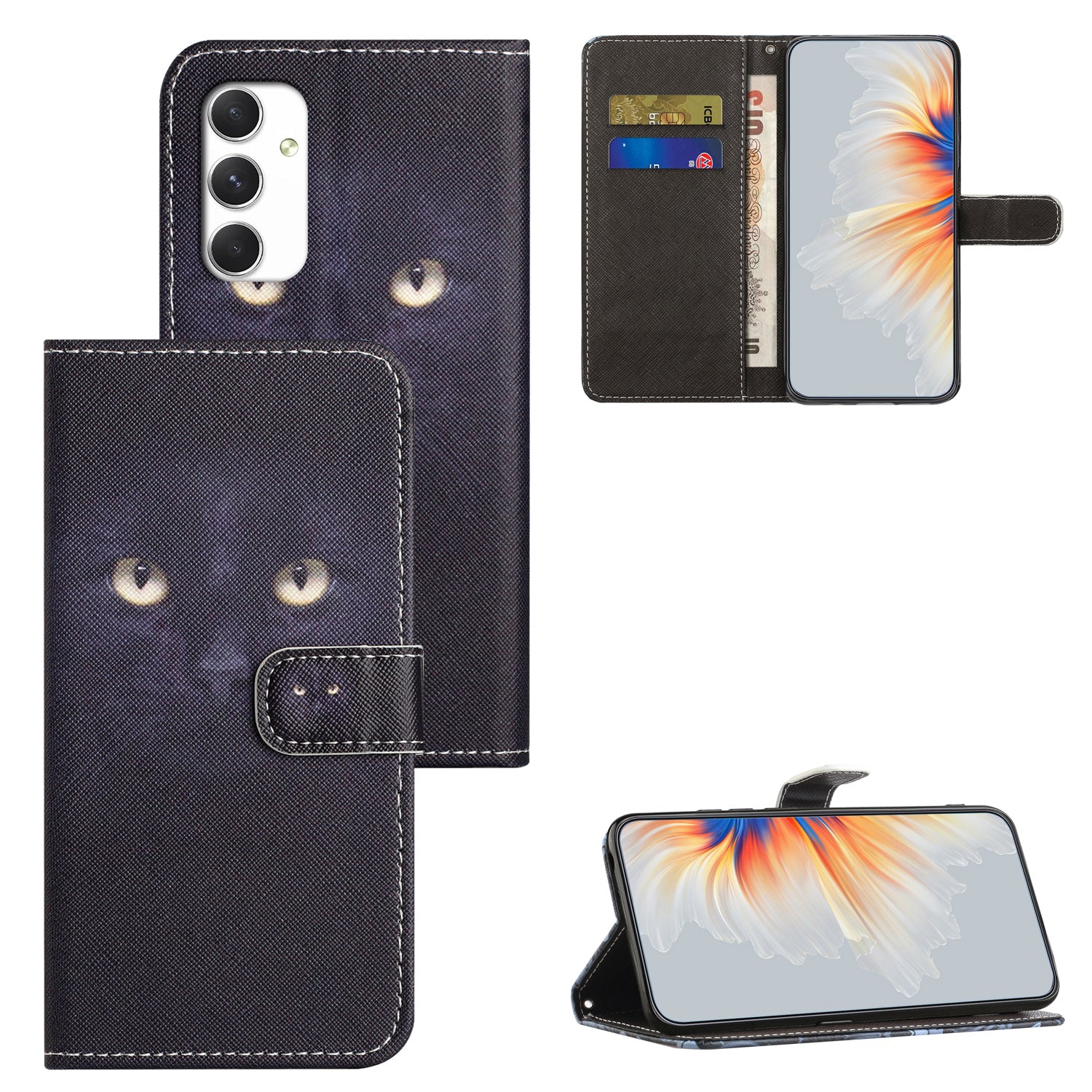 For Samsung Galaxy A16 5G / A16 4G Case Pattern Print PU Leather Wallet Phone Cover Cross Texture - Cat's Eye