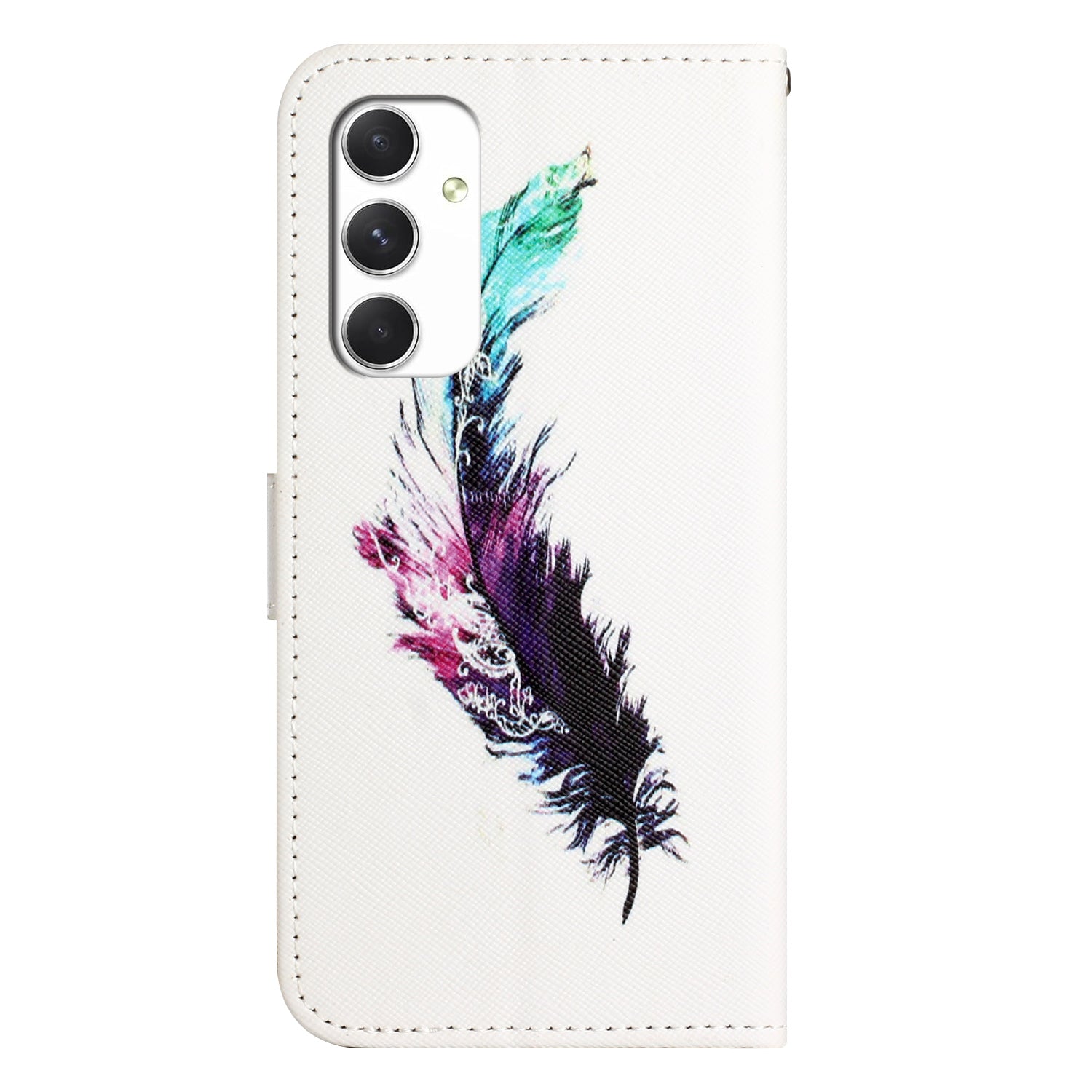 For Samsung Galaxy A16 5G / A16 4G Case Pattern Print PU Leather Wallet Phone Cover Cross Texture - Feather