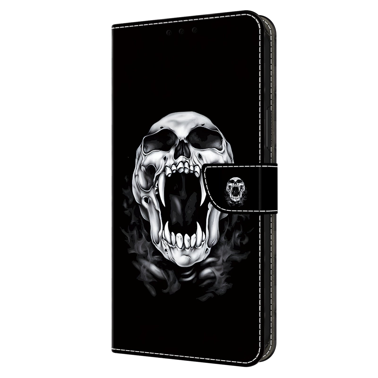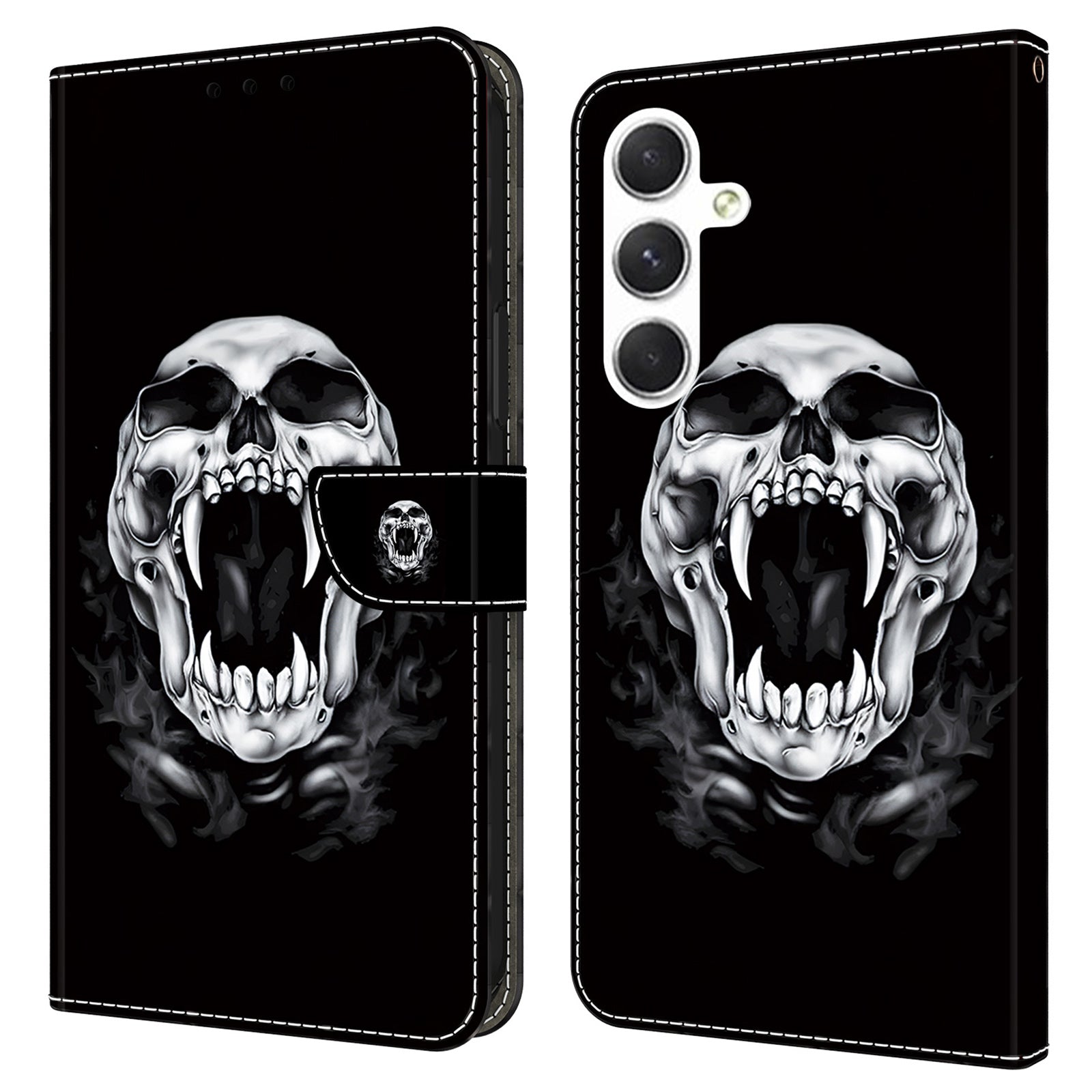 For Samsung Galaxy A16 5G / A16 4G Case Pattern Printed Protective Leather Flip Phone Case - Skull