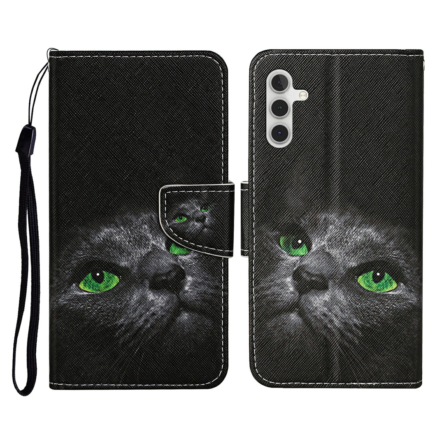 For Samsung Galaxy A16 5G / A16 4G Case Pattern Printing Protective Leather Folio Phone Cover - Black Cat