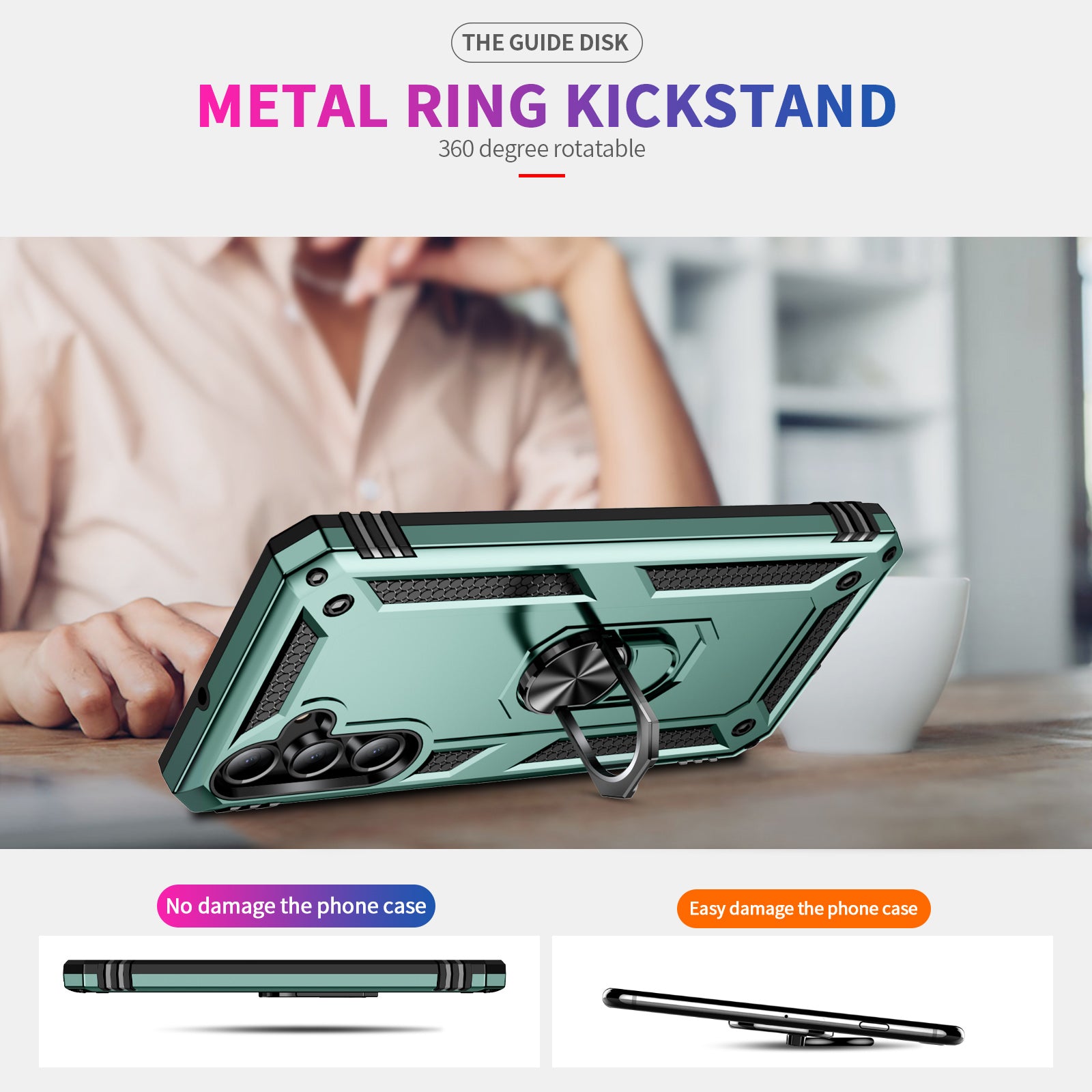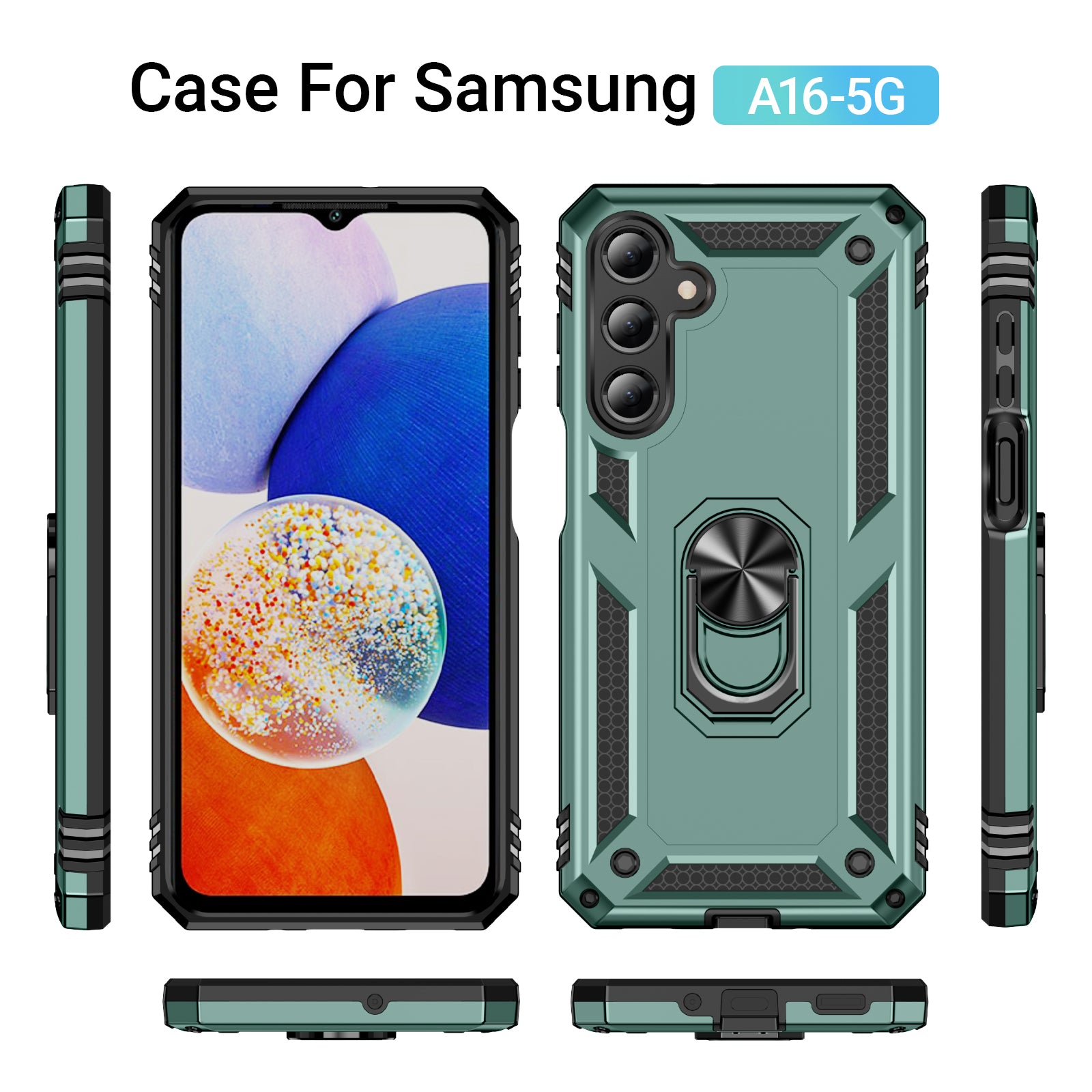 For Samsung Galaxy A16 5G / A16 4G Case PC+TPU Phone Cover with Rotary Ring Kickstand - Blackish Green