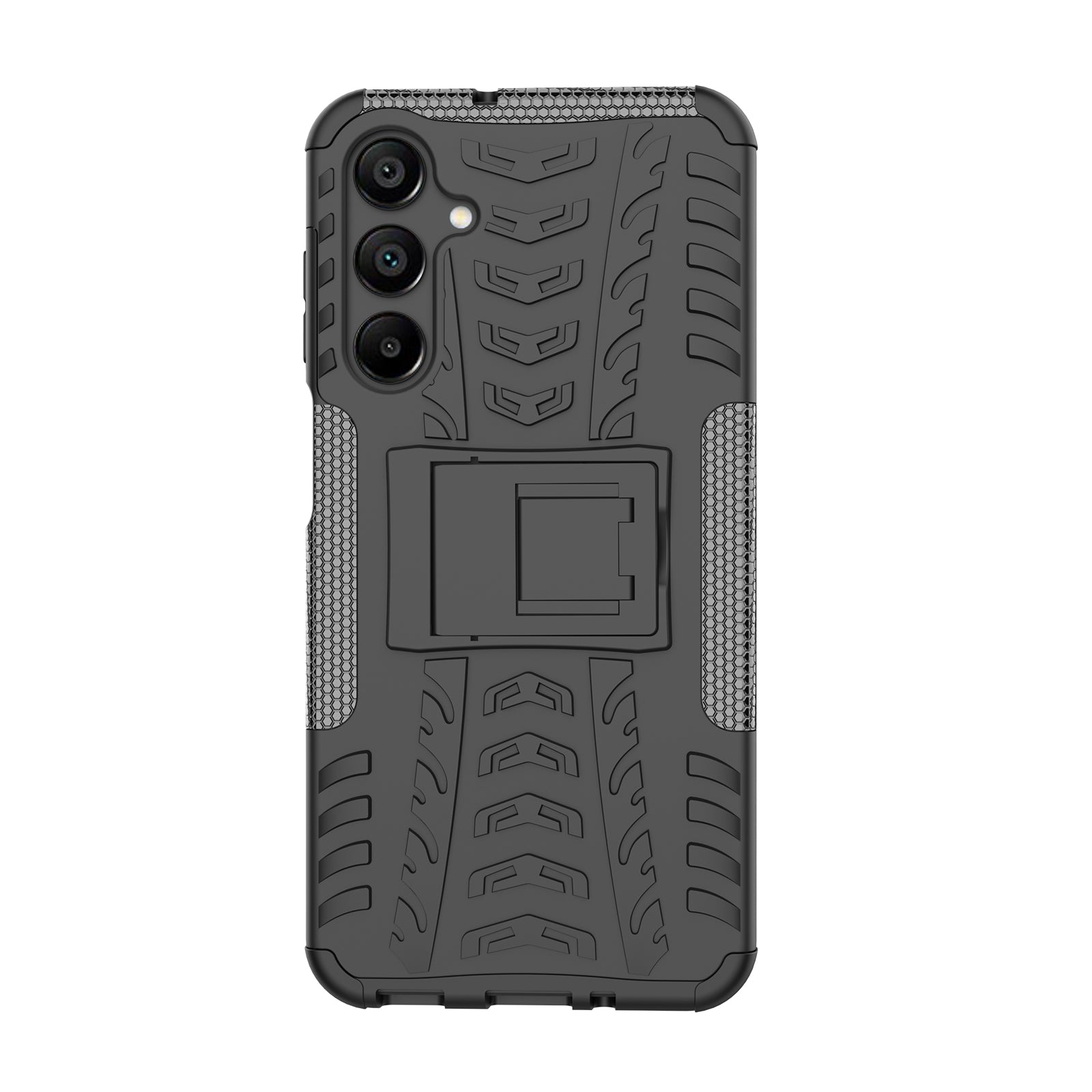For Samsung Galaxy A16 5G / A16 4G Case PC+TPU Tyre Pattern Slim Phone Cover with Kickstand - Black