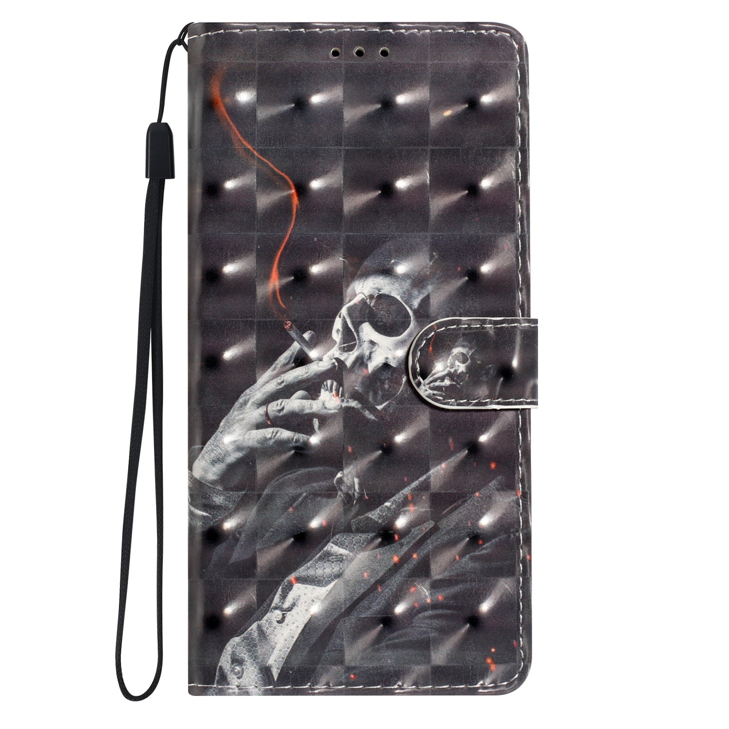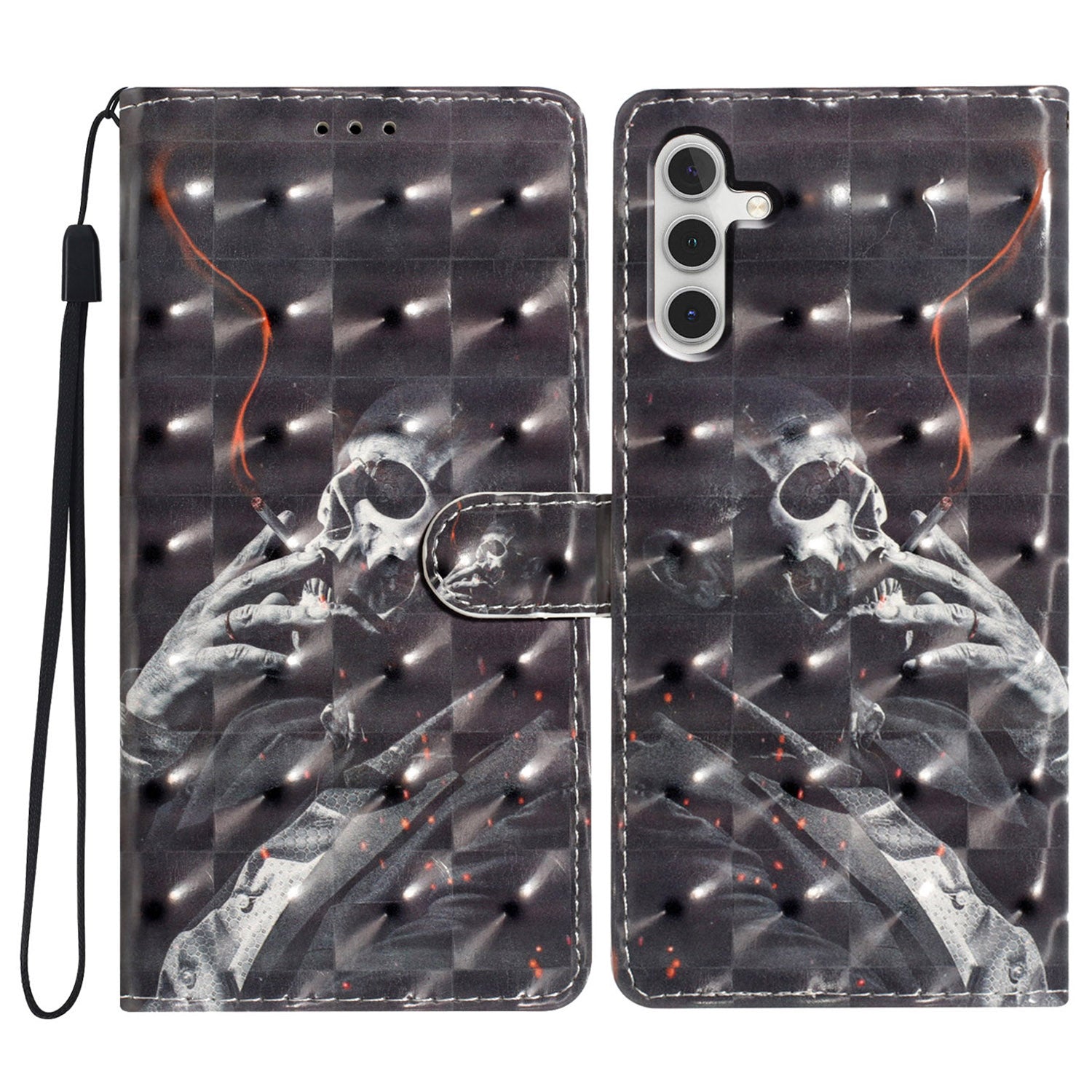 For Samsung Galaxy A16 5G / A16 4G Case PU Leather 3D Pattern Printing Wallet Phone Cover - Smoking Skeleton