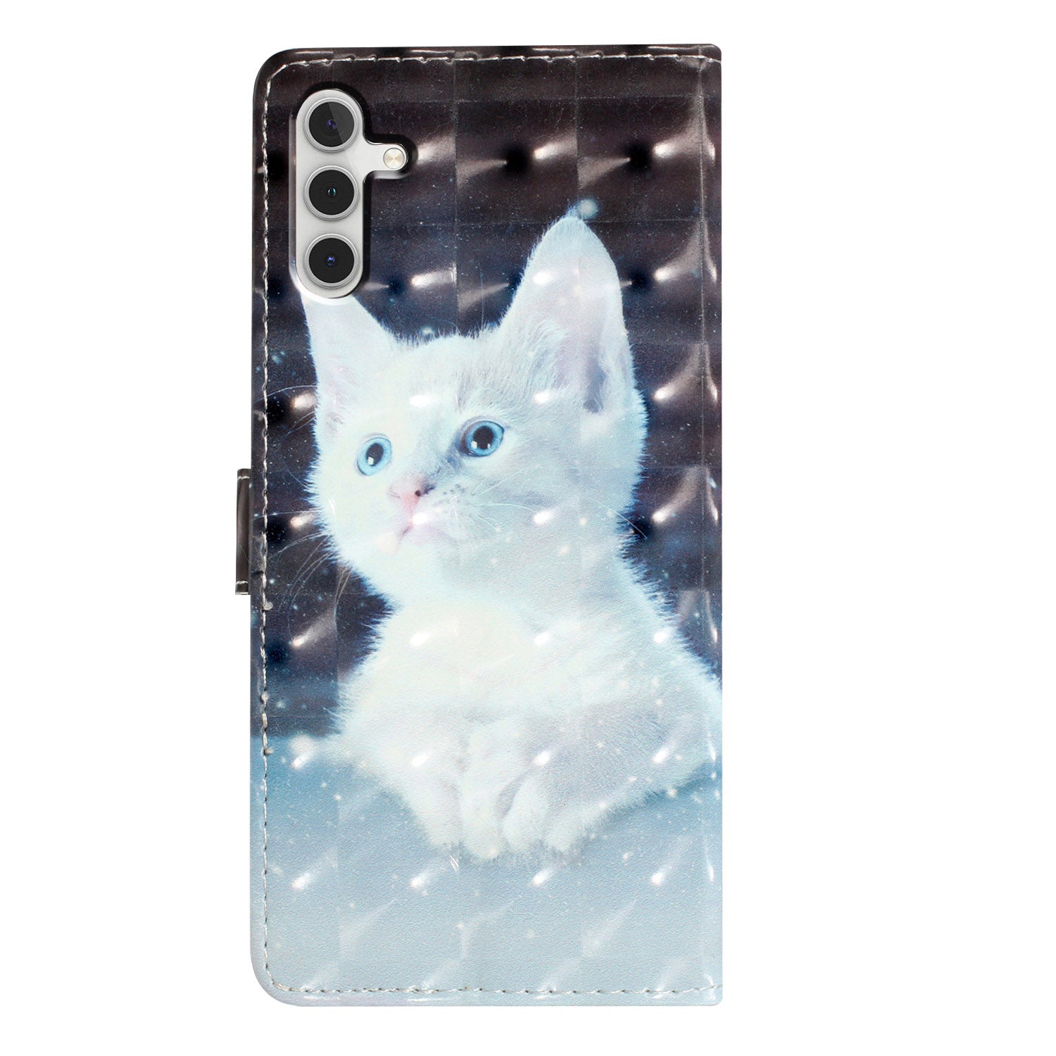 For Samsung Galaxy A16 5G / A16 4G Case PU Leather 3D Pattern Printing Wallet Phone Cover - White Cat