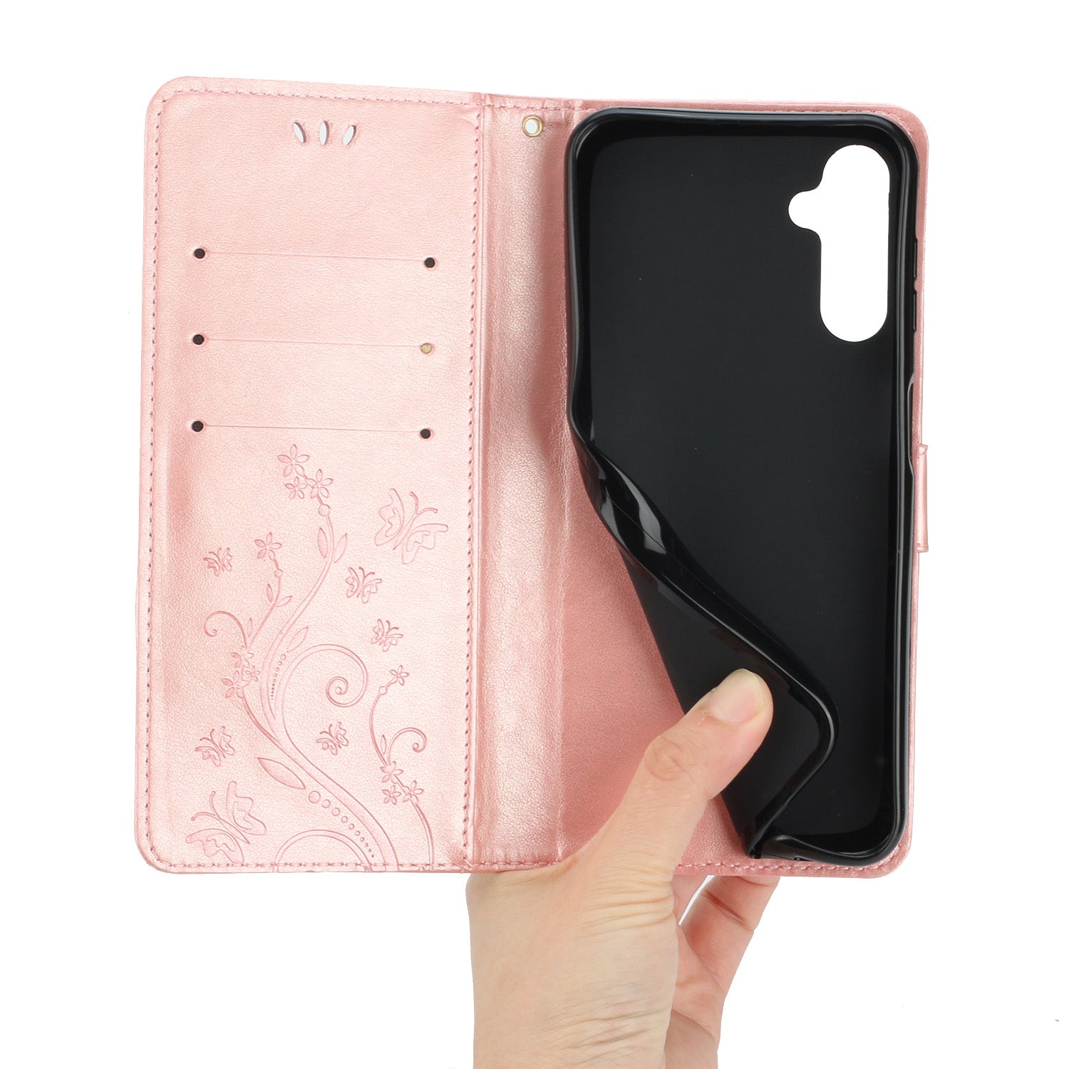 For Samsung Galaxy A16 5G / A16 4G Case PU Leather Phone Wallet Cover with Strap - Rose Gold