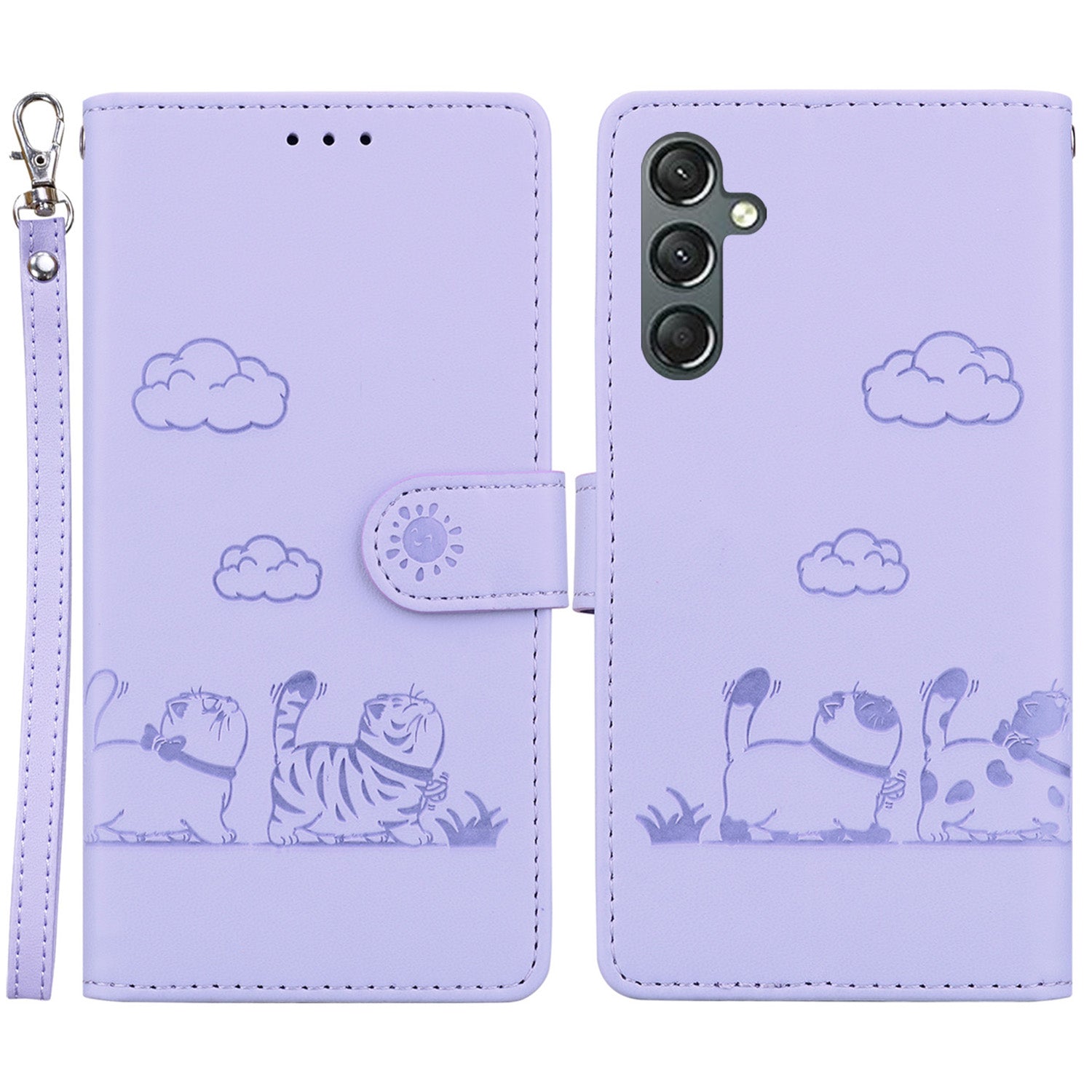 For Samsung Galaxy A16 5G / A16 4G Case RFID Blocking Kitten Pattern TPU+PU Leather Phone Cover - Purple