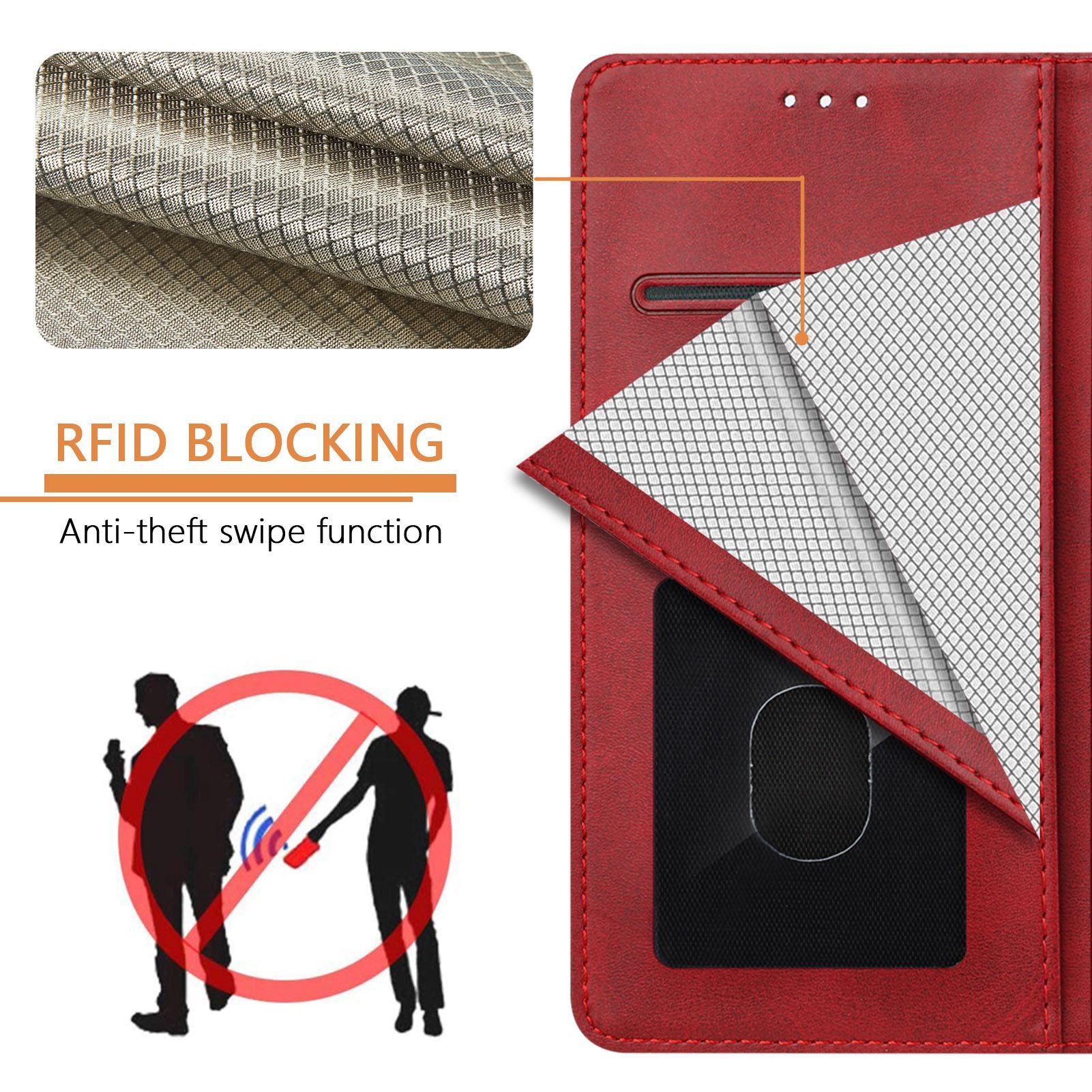For Samsung Galaxy A16 5G / A16 4G Case RFID Blocking Wallet Leather Phone Cover with Strap - Red